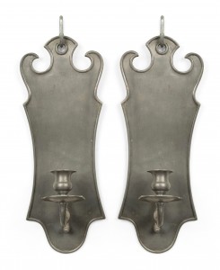 Pair of American Country Pewter Pediment Top Wall Sconces