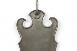 Style: American Materials & Techniques: Metal, pediment, pewter Category: Lighting Condition: Antique condition.