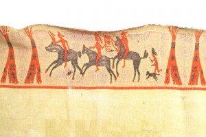 Style: American Materials & Techniques: Motif, motifs, woven Category: Cleared Art, Rugs/Textile Condition: Rip at the top of the textile.