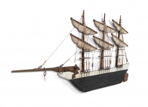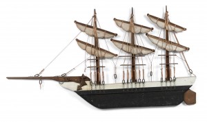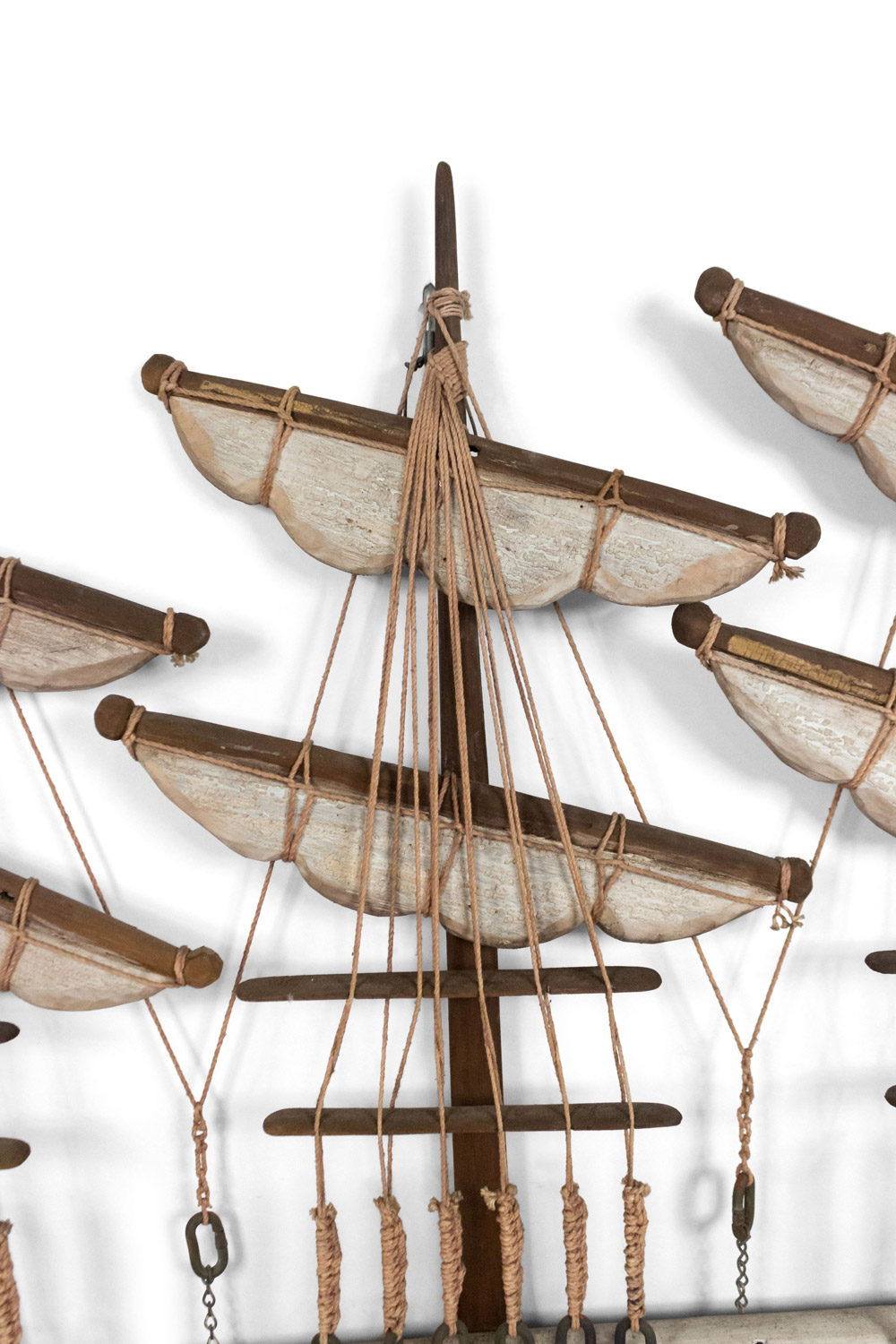 American Country style (20th Century) carved wall plaque of clipper ship with white painted sails and trim.