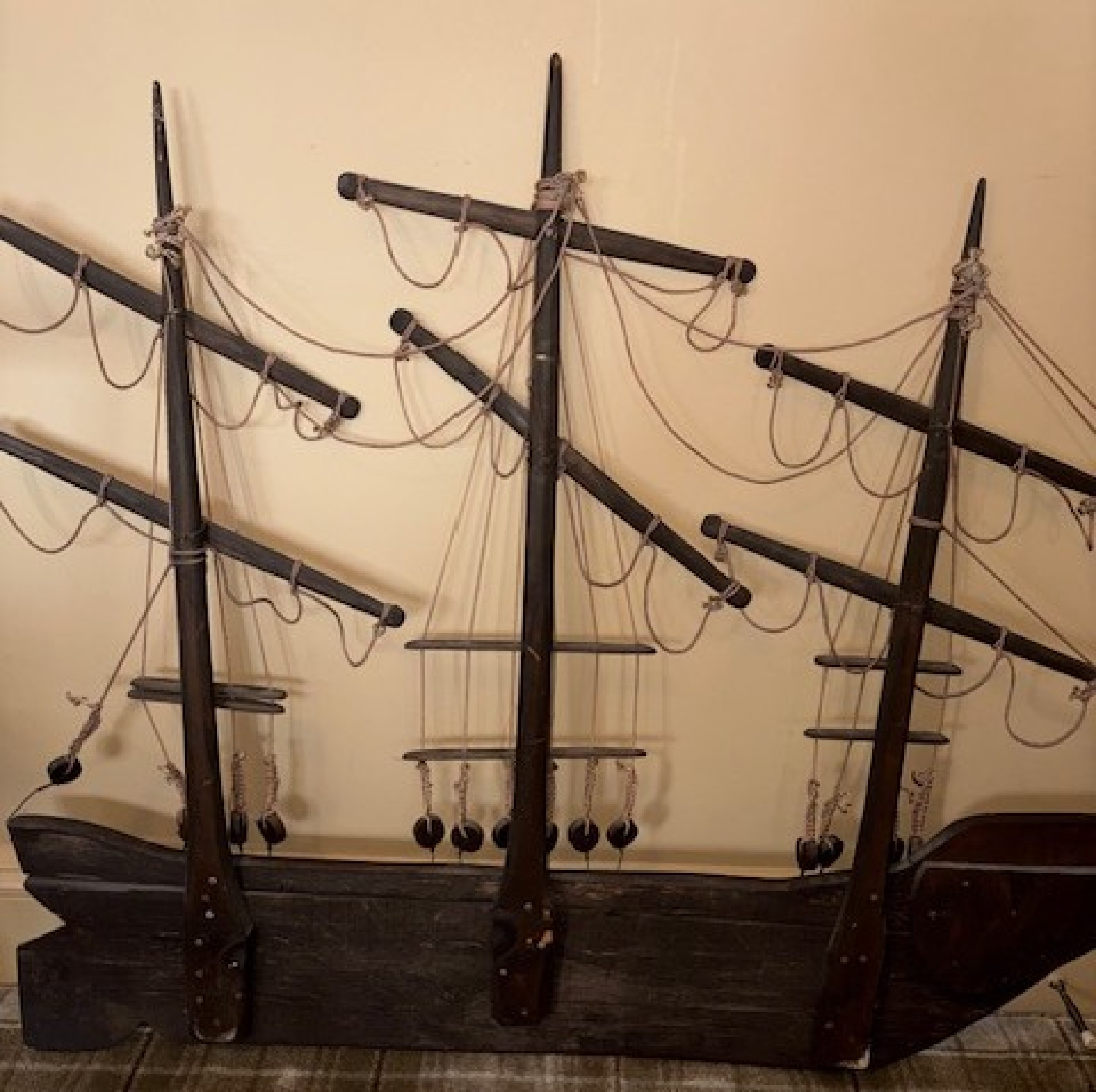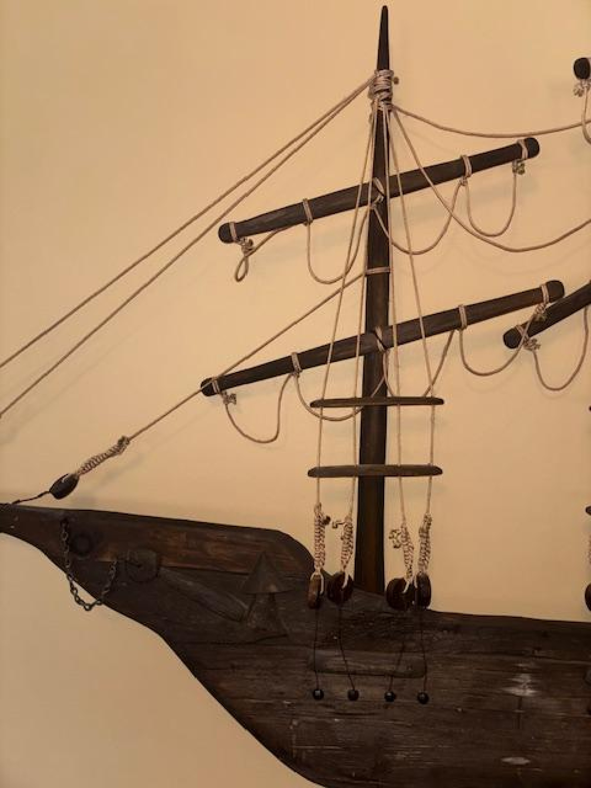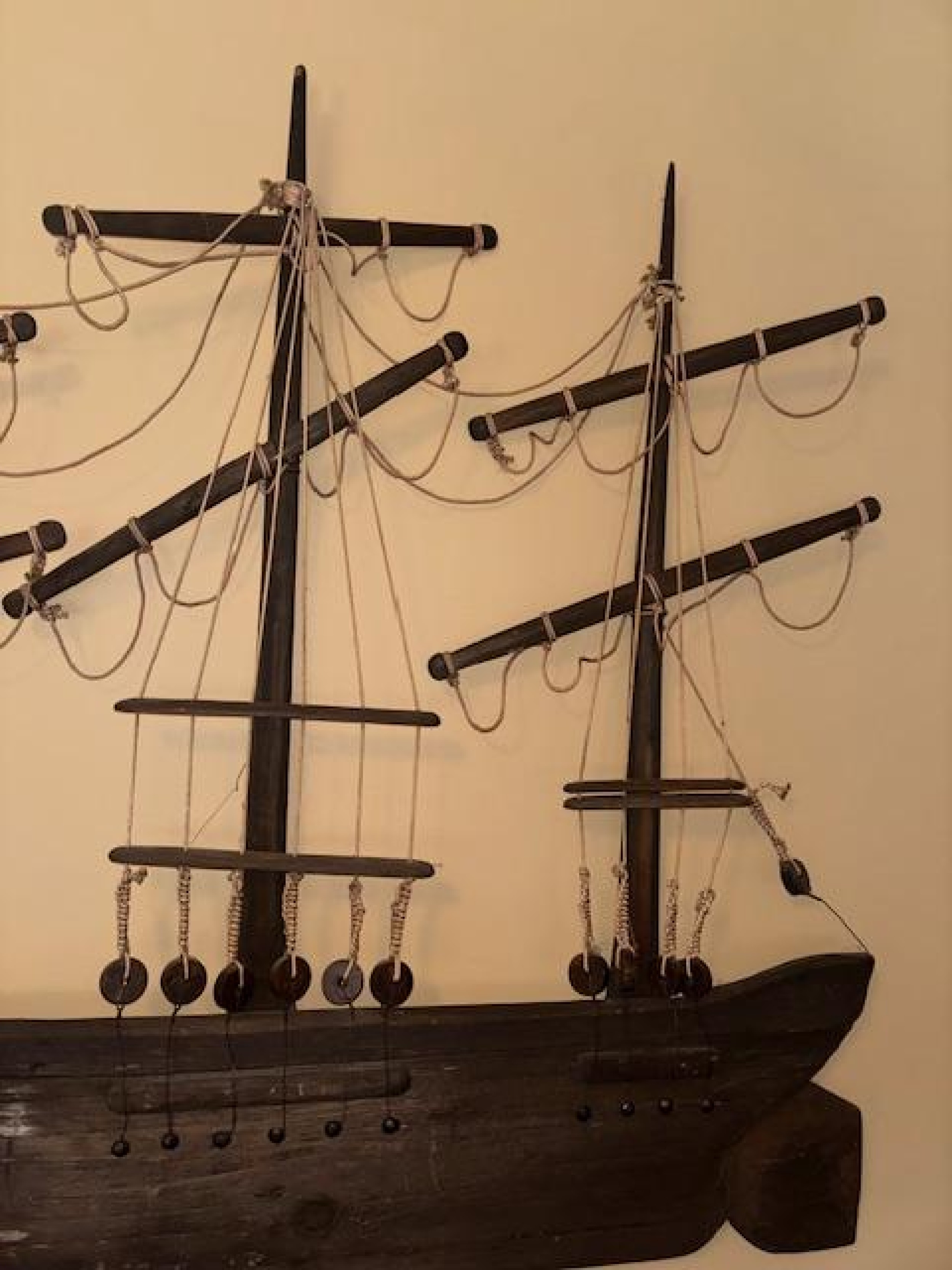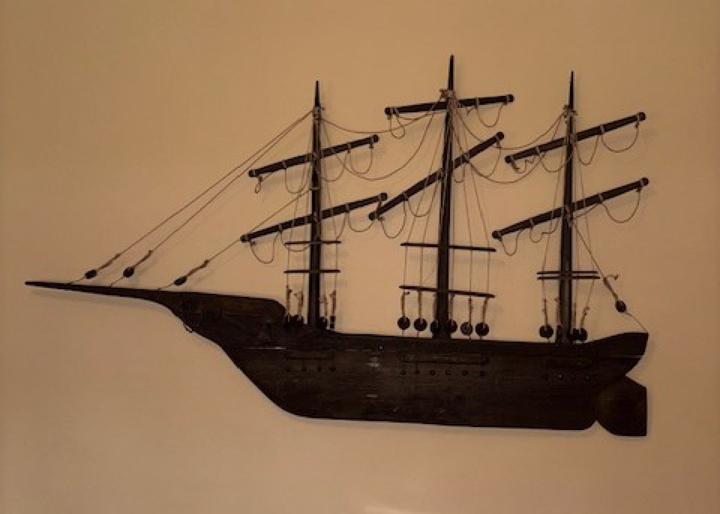 American Country style (20th Century) carved wall plaque of clipper ship with sails and rope trim..