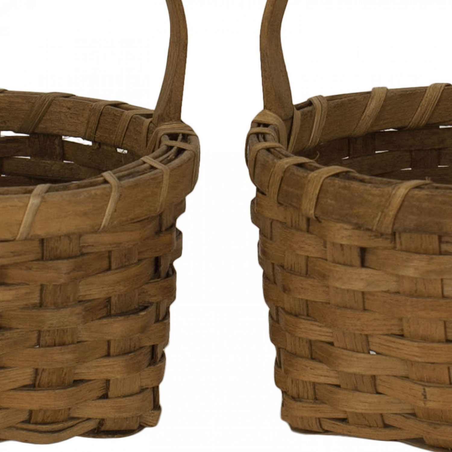 2 American Country natural small splint wood round picnic baskets with 1 centered handle (PRICED EACH).