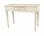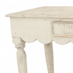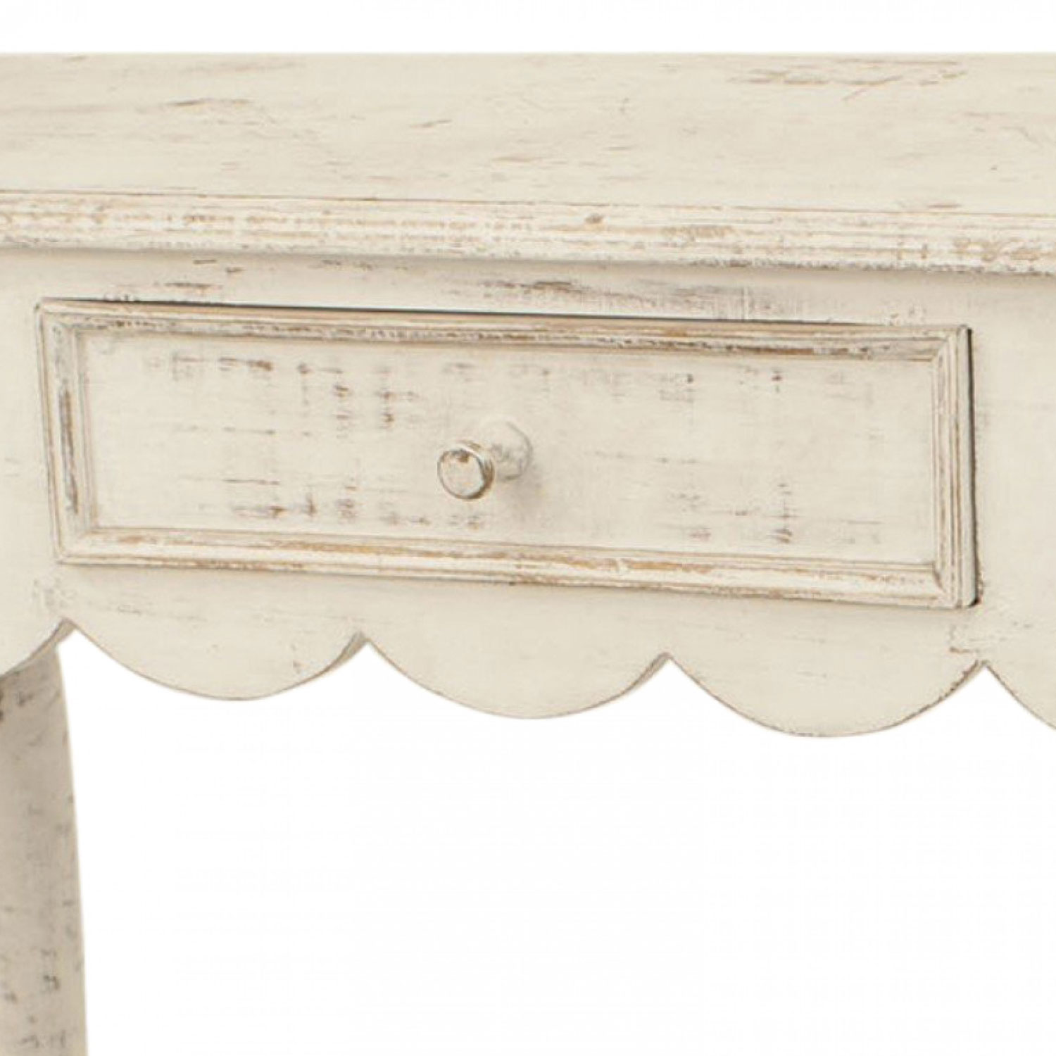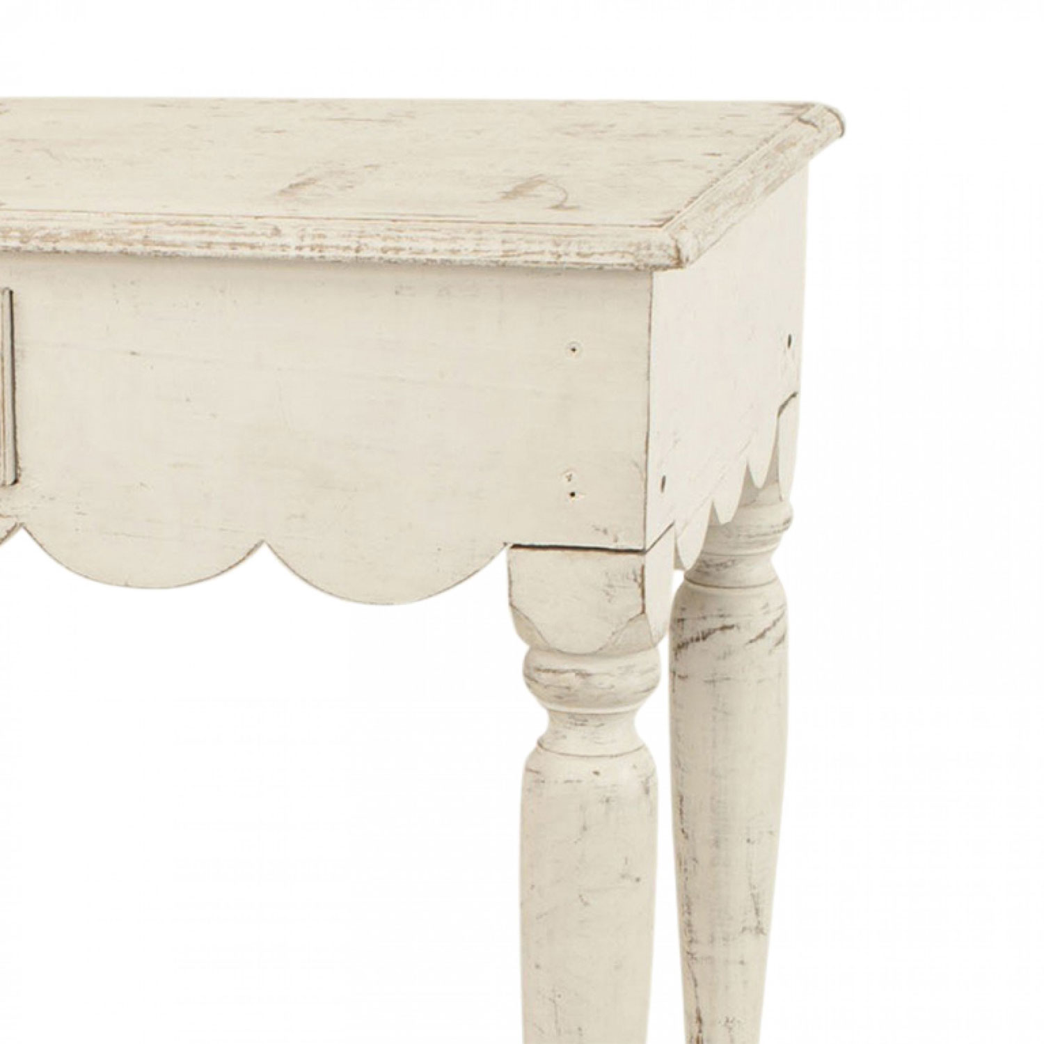American Country (19th Century) console table with an antique white painted finish and a scalloped design apron with a single front drawer supported on turned legs..