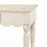 American Country (19th Century) console table with an antique white painted finish and a scalloped design apron with a single front drawer supported on turned legs.