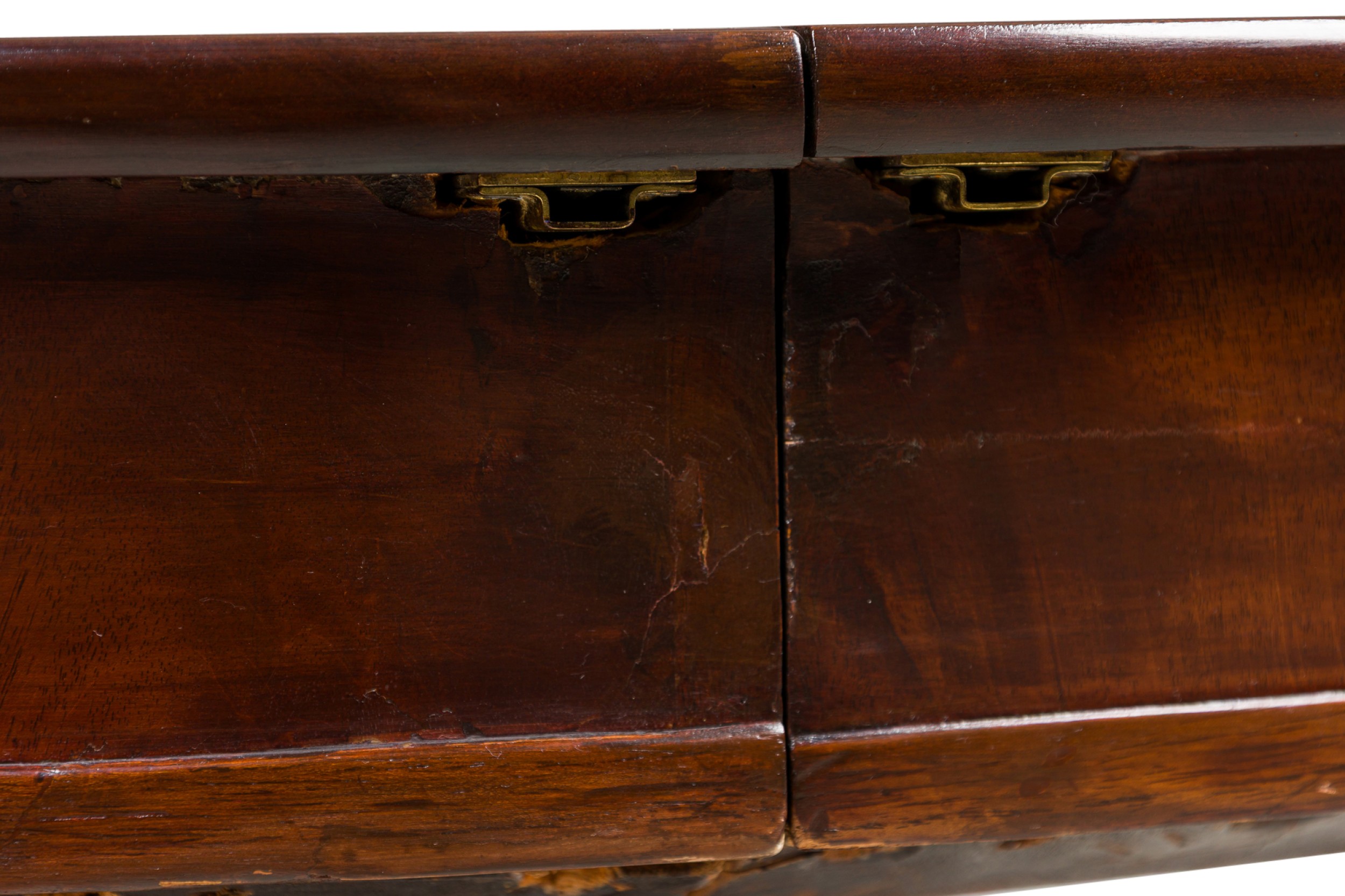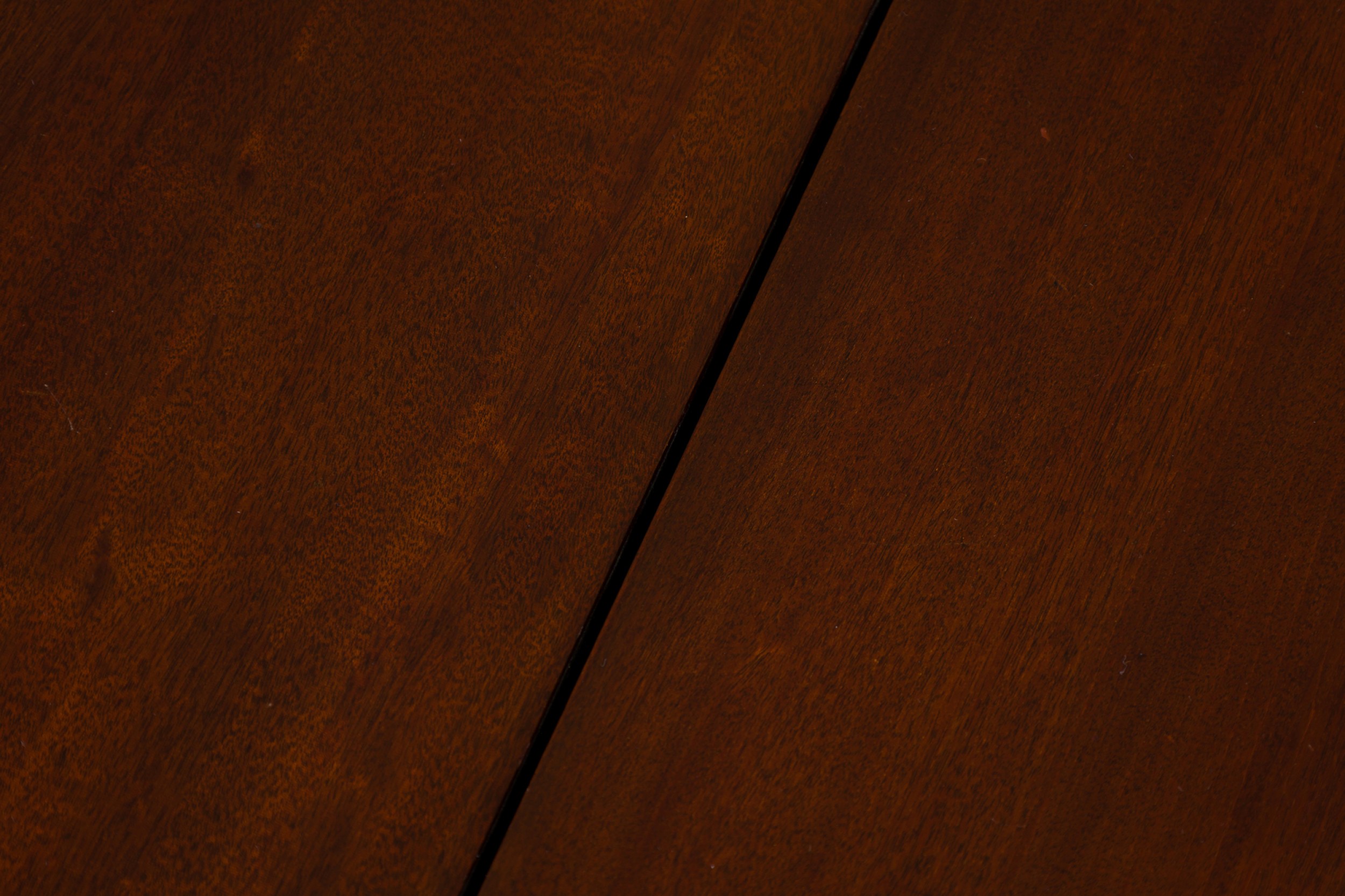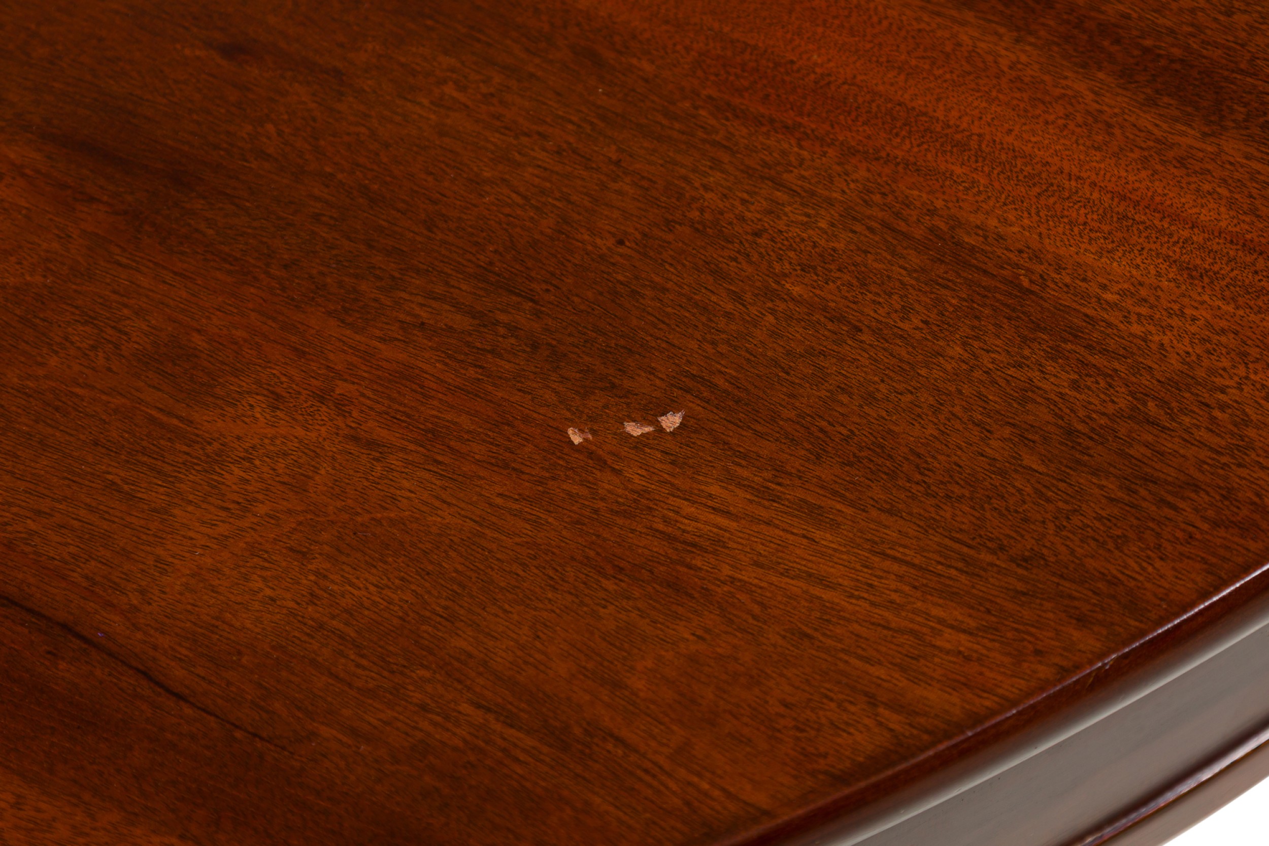 Style: American Materials & Techniques: Mahogany, veneer, wood Category: Tables, Office/Library, Dining Room Condition: Top: 48" diameter and 5" height. Total width with leaves extended: 94". Good; Wear consistent with age and use