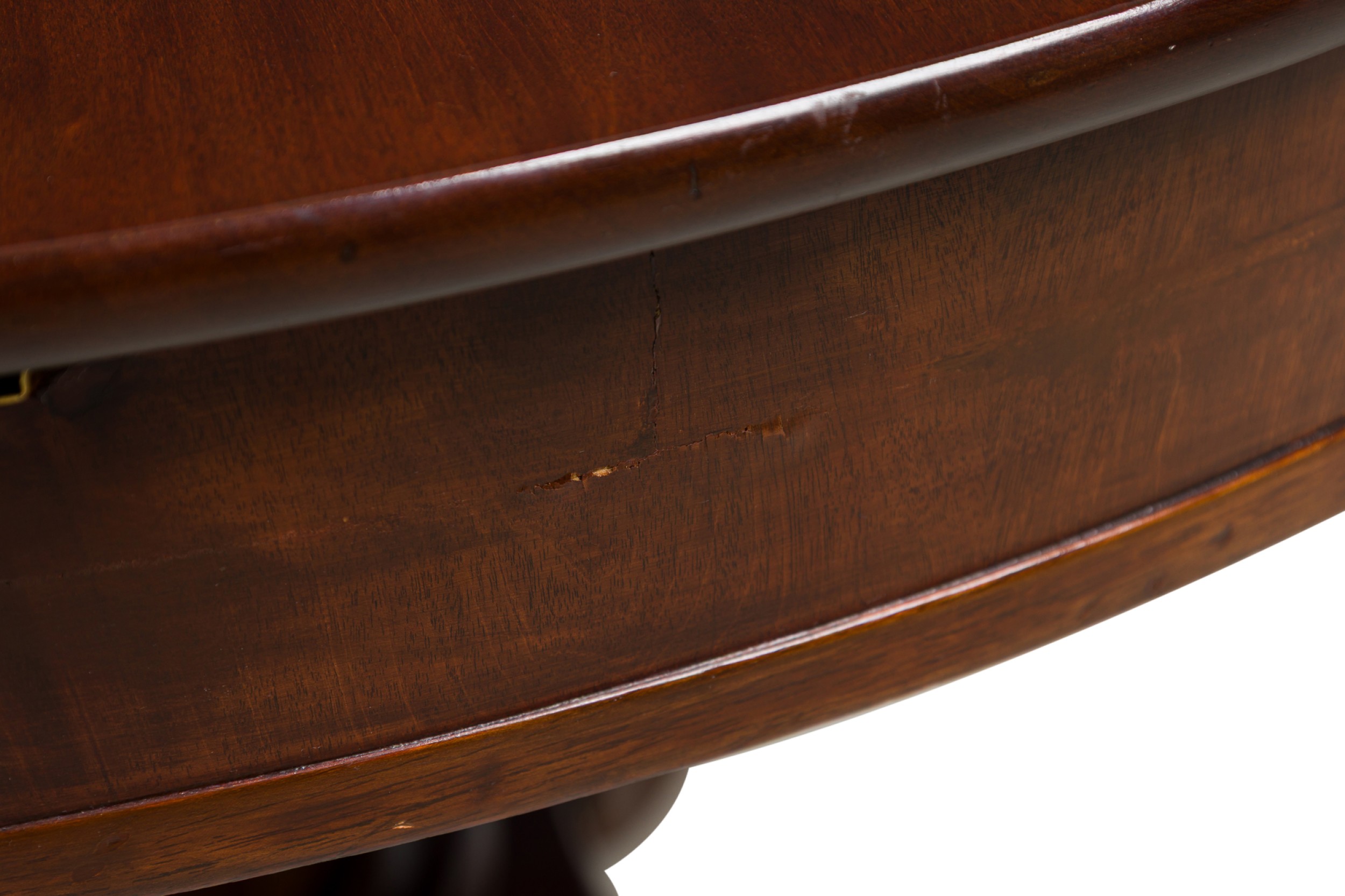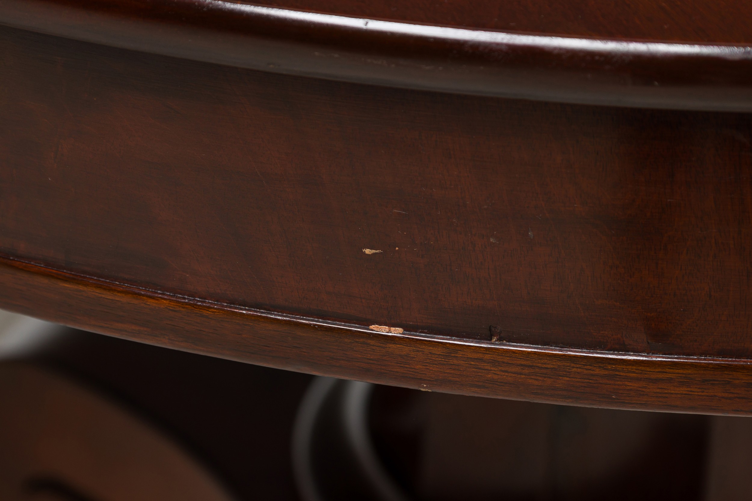 American Empire Circular Dining Table with Mahogany Veneer and 3 Large Leaves