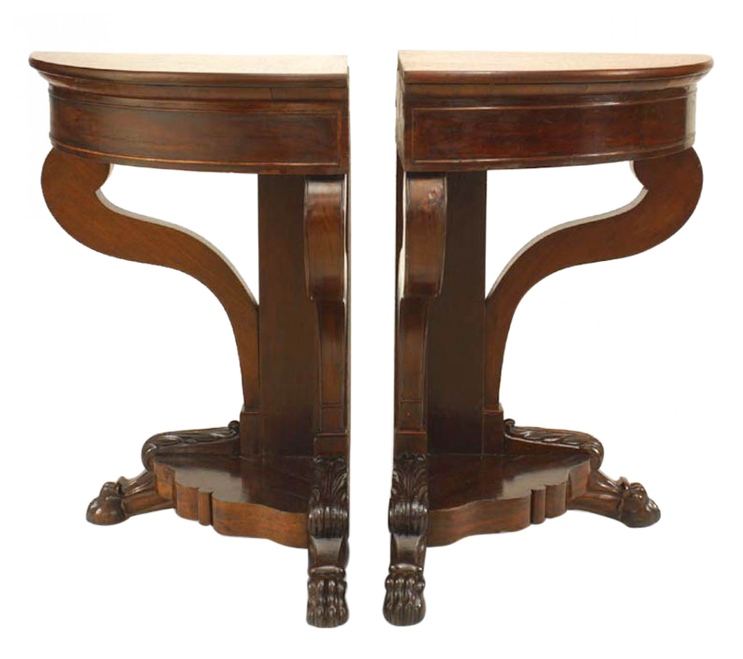 Pair of American Empire Mahogany Corner Console Tables