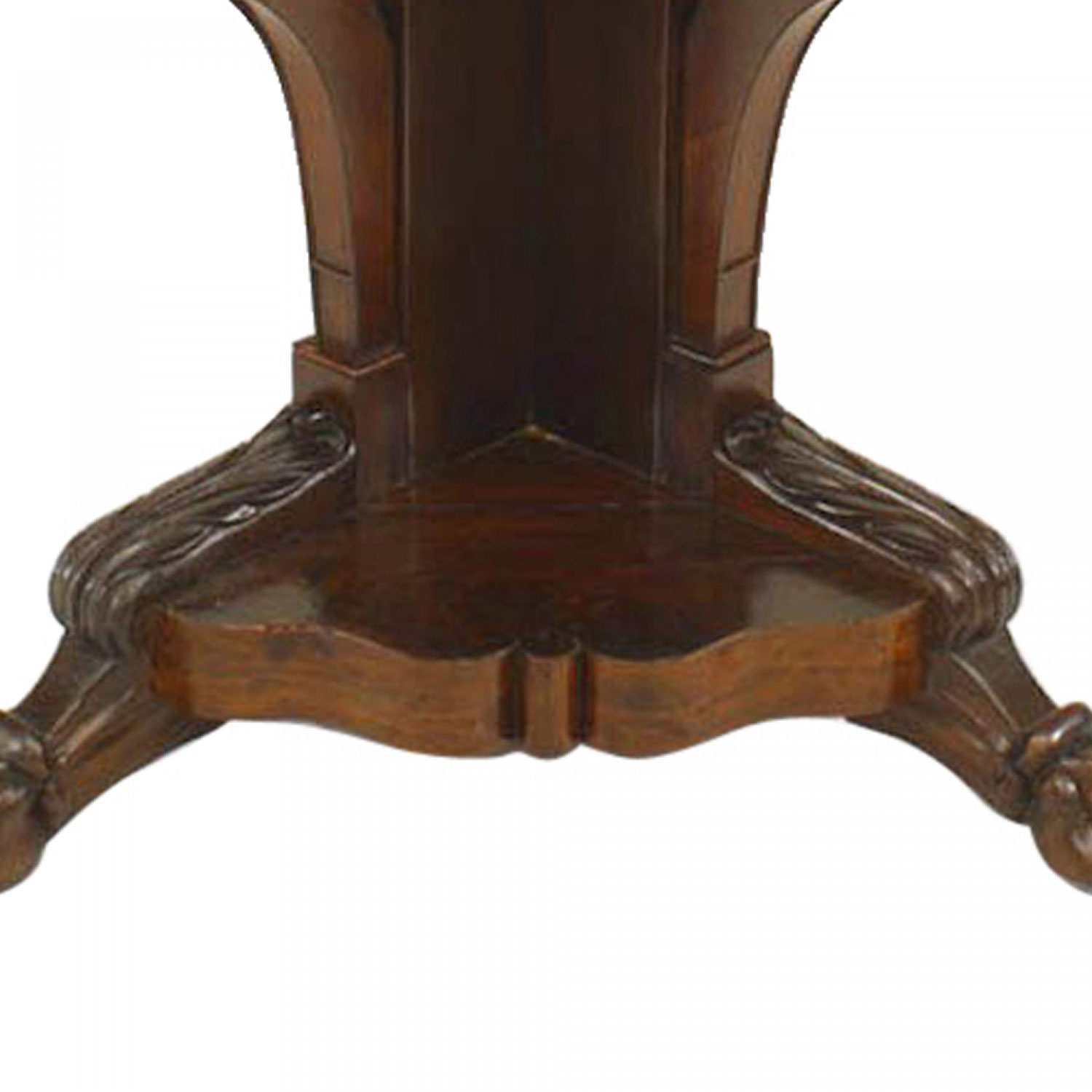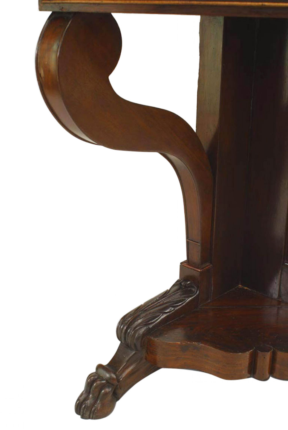 PAIR of American Empire mahogany corner console tables with scroll legs (PRICED AS PAIR).