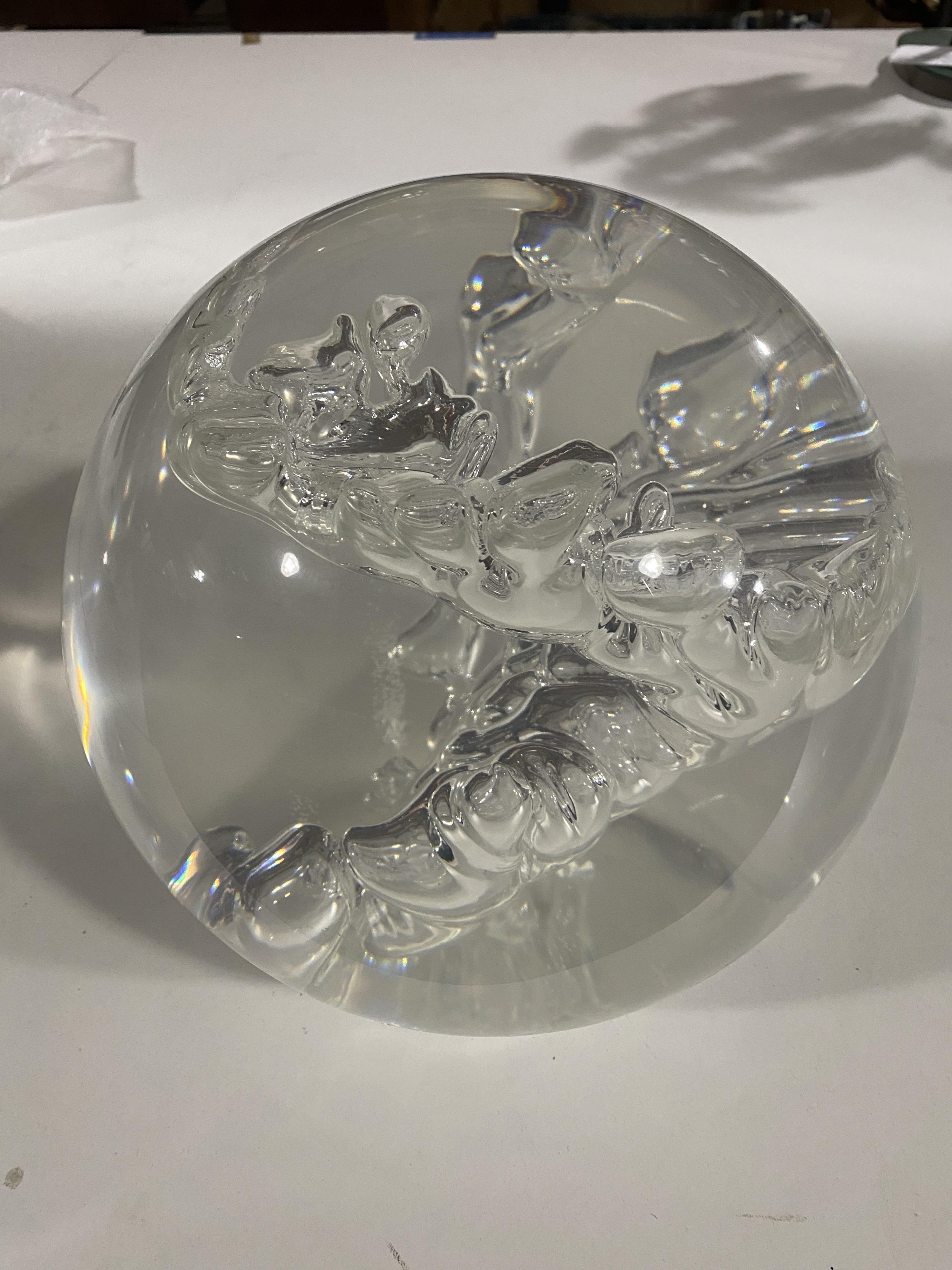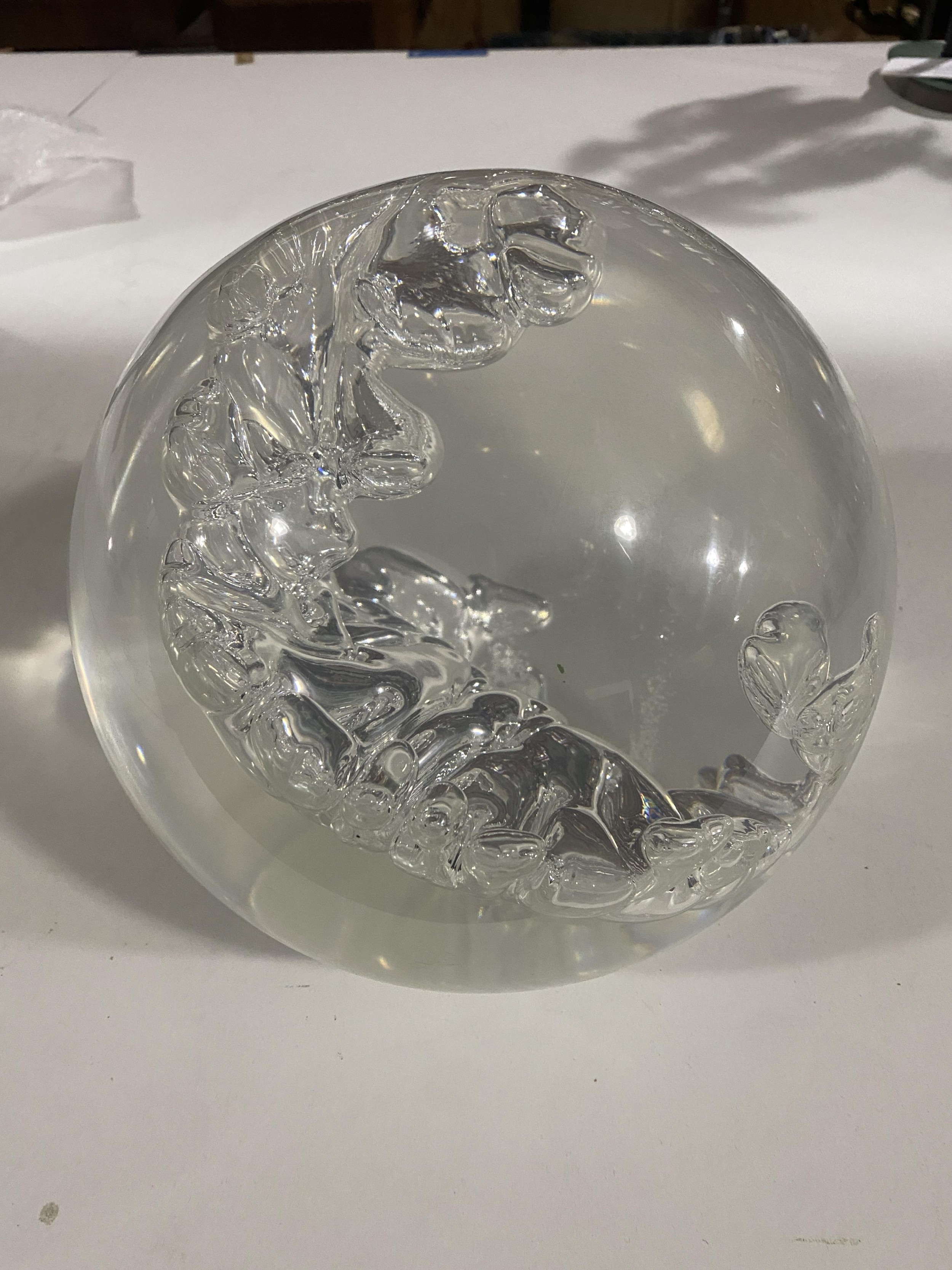 American Mid-Century Modern acrylic lucite orb embodying a dynamic splash within the sphere.