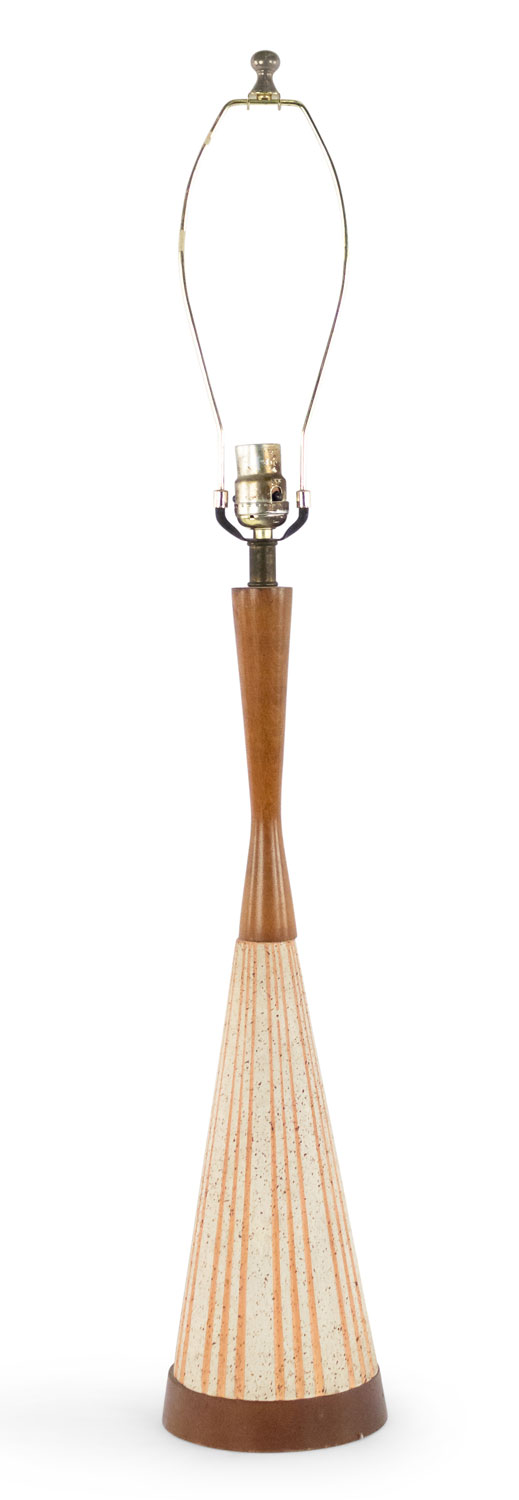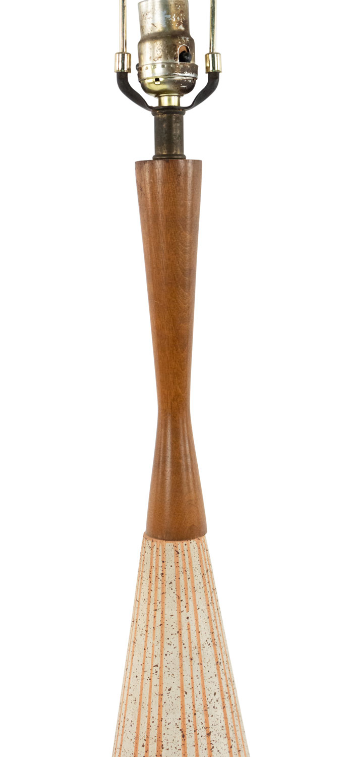 Style: Mid-Century Materials & Techniques: Ceramic, wood Category: Lighting Condition: Ships without a shade