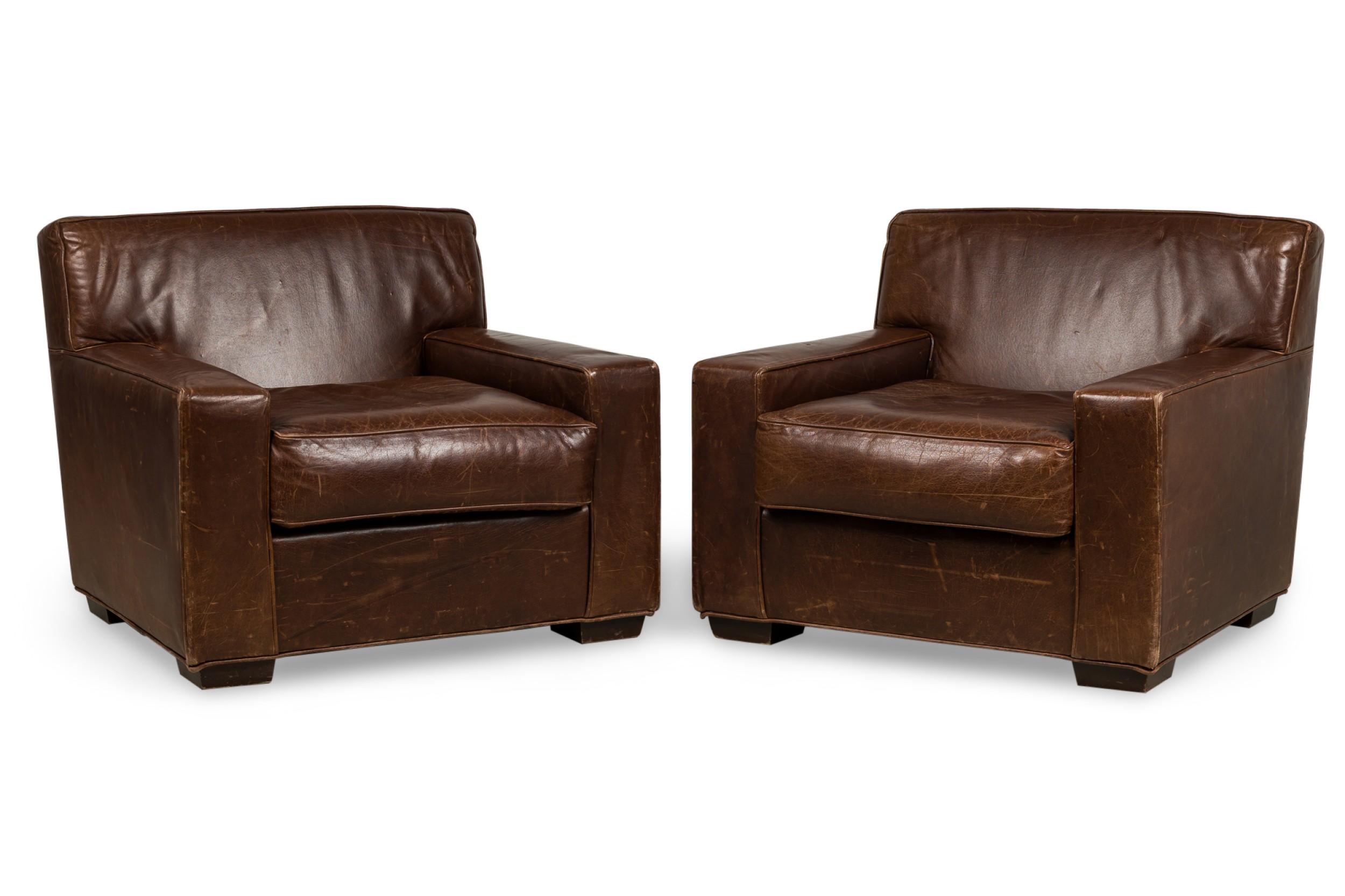 PAIR of American Mid-Century Brown Leather Lounge Chairs (PRICED AS PAIR)
