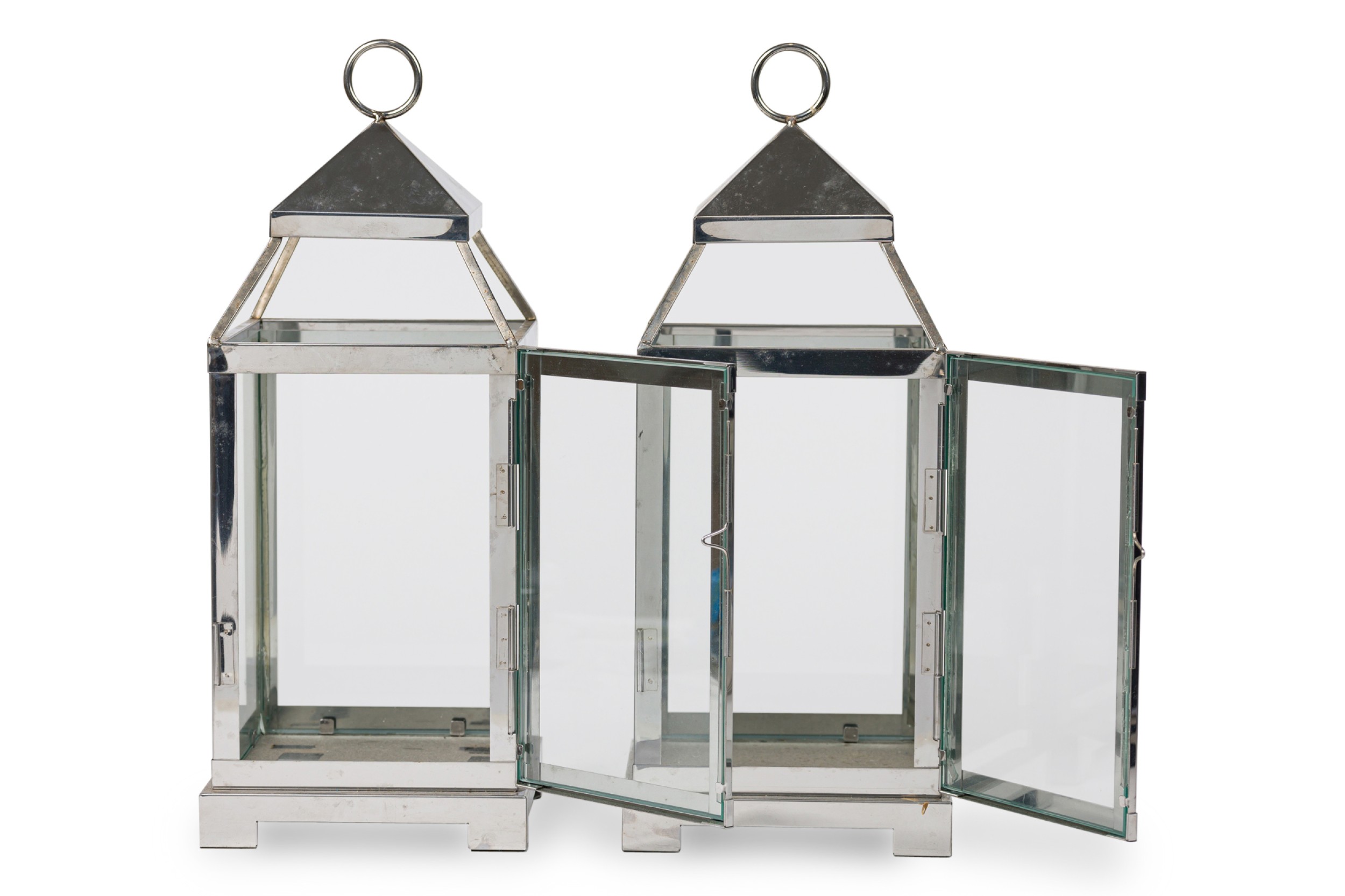 American Mid-Century Chrome and Glass Large Lanterns