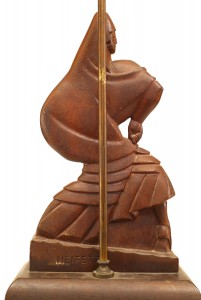 Pair of American Mid-Century Heifetz Figural Mahogany Table Lamps