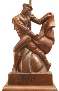 PAIR of American Mid-century modern figural table lamps in mahogany depicting a stylized bull fighter & flamenco dancer on rectangular bases (signed HEIFETZ) (PRICED AS PAIR)..