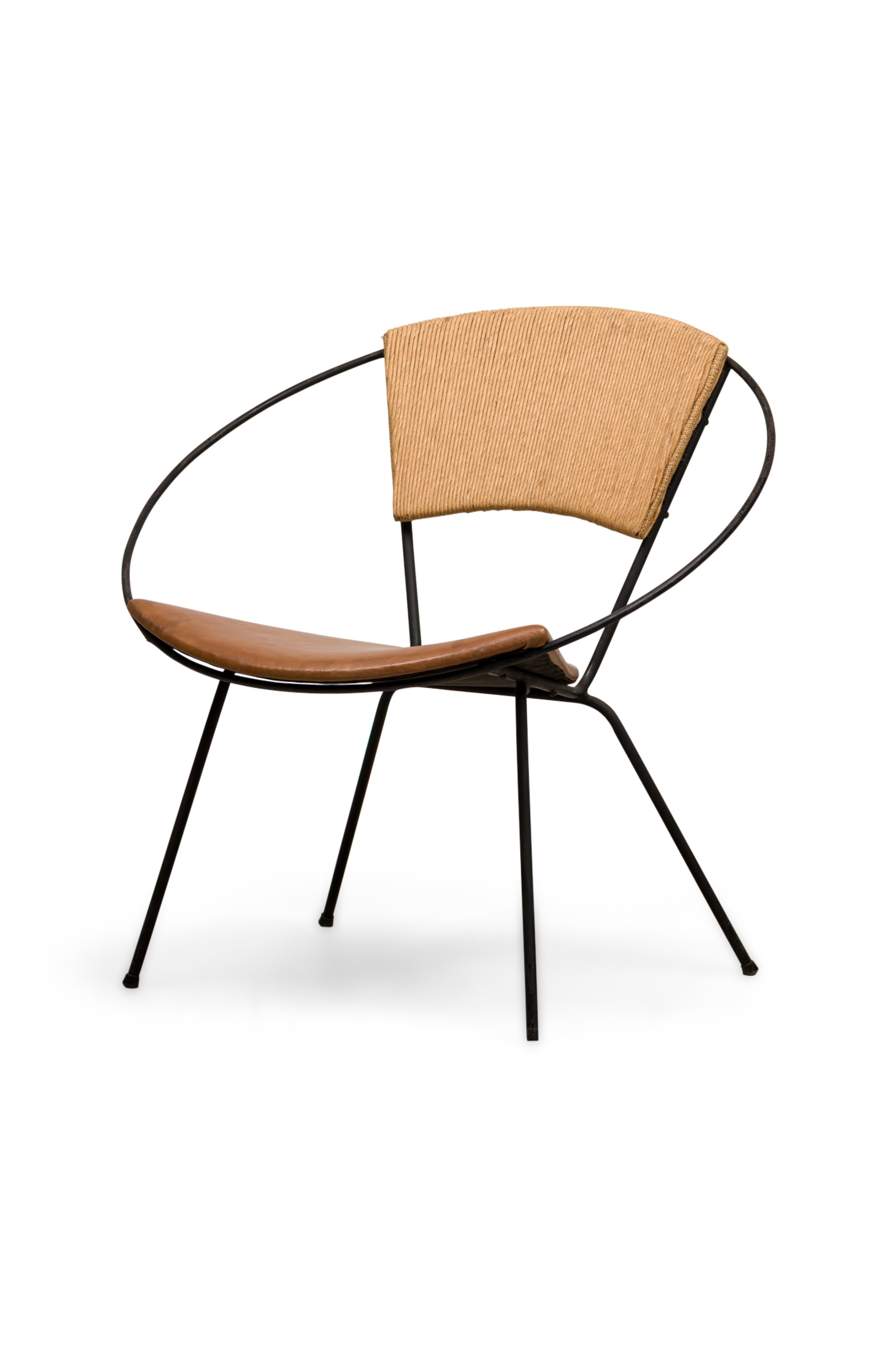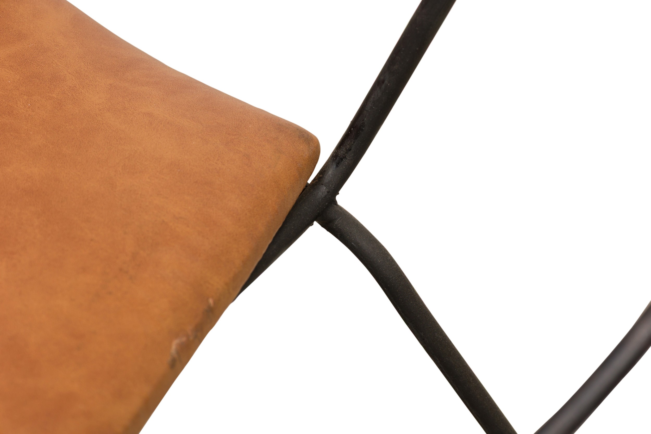 Style: Mid-Century Materials & Techniques: Iron, leather Category: Seating, Office/Library, Dining Room