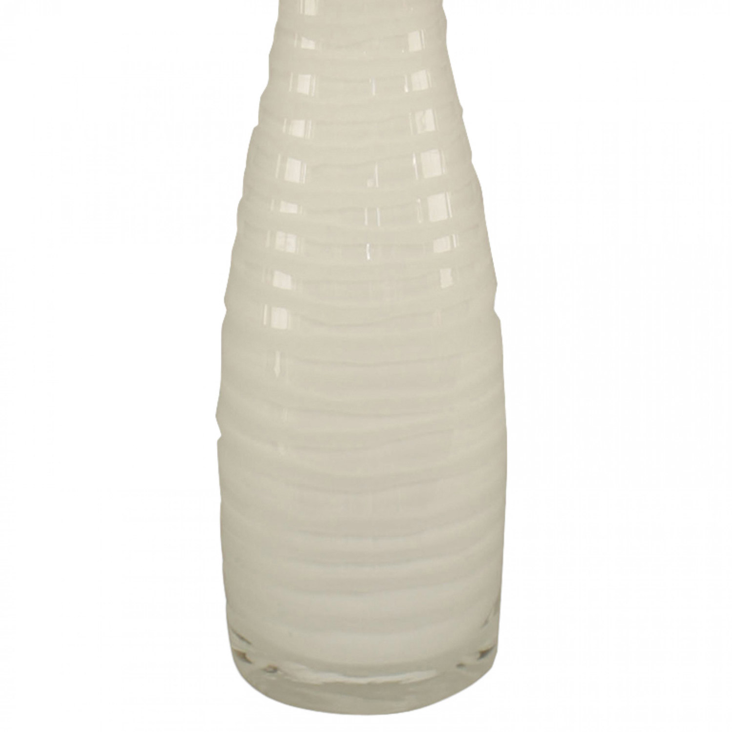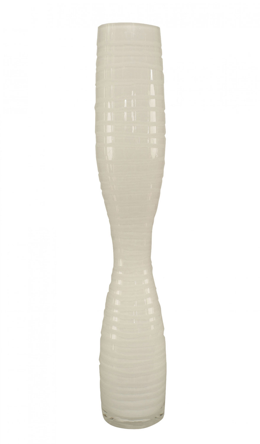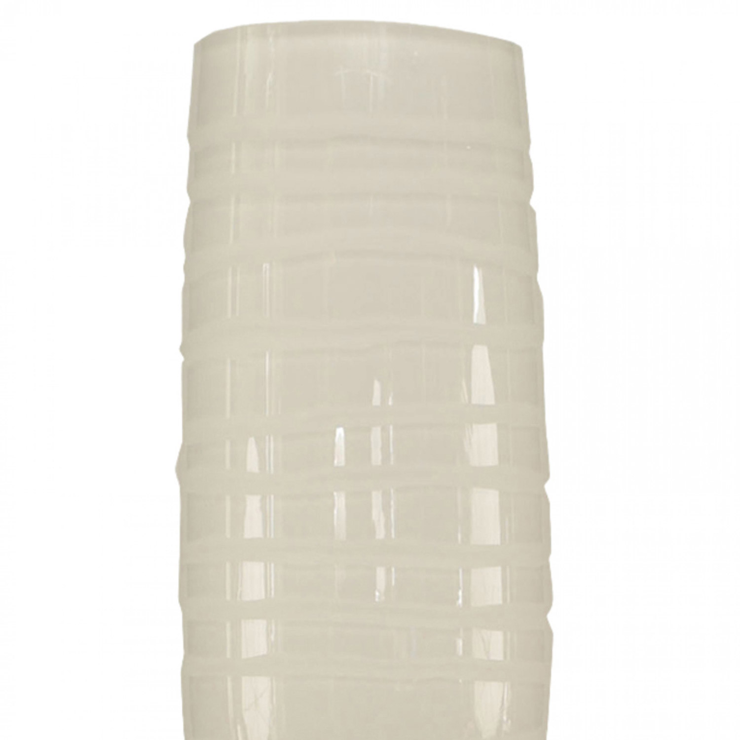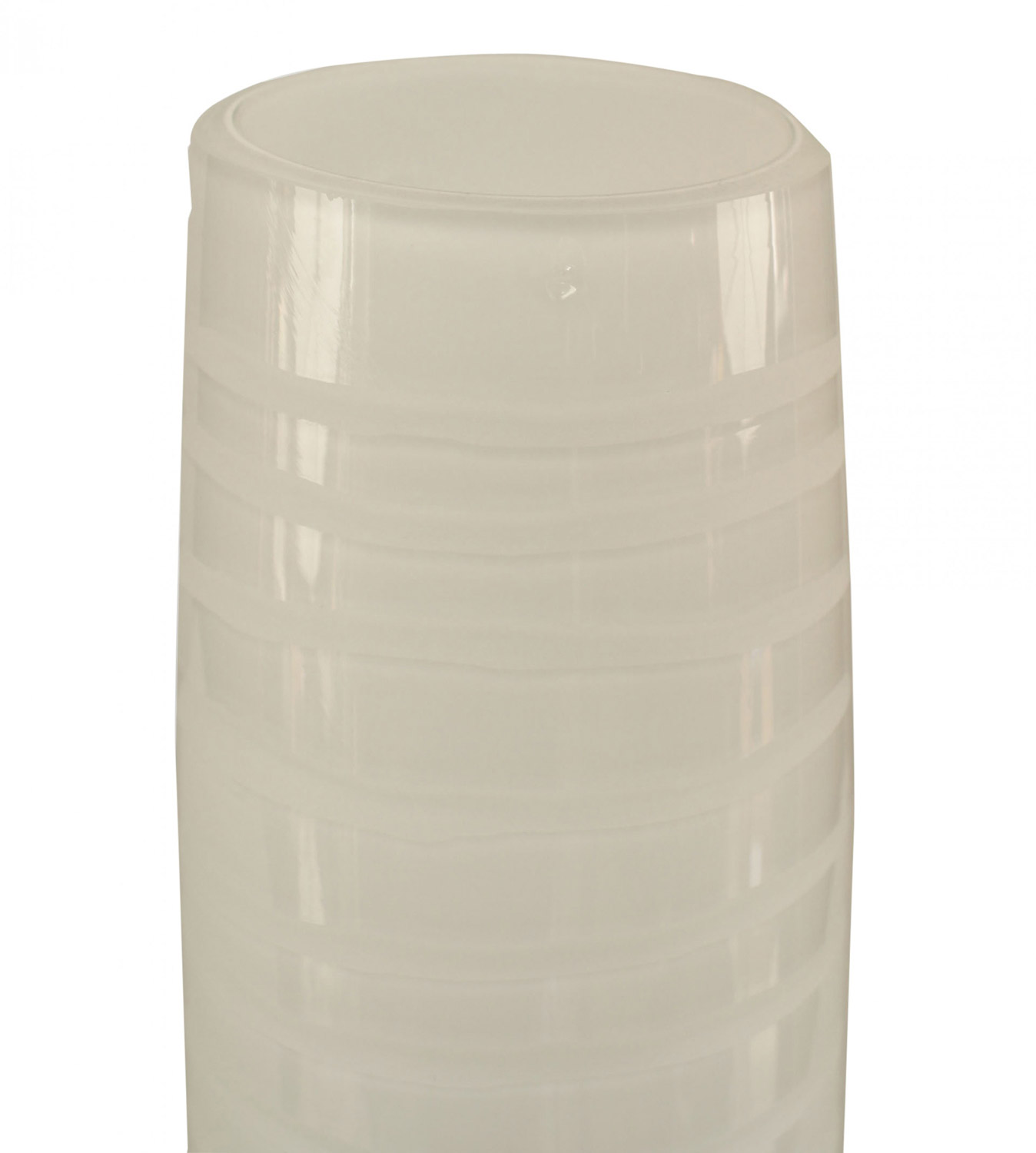 American Mid-century modern etched and cased white glass vase with a waisted cylinder shape.