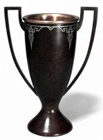 American Mission bronze with brown patina loving cup vase with silver deposit overlay (Heintz Art Metal).