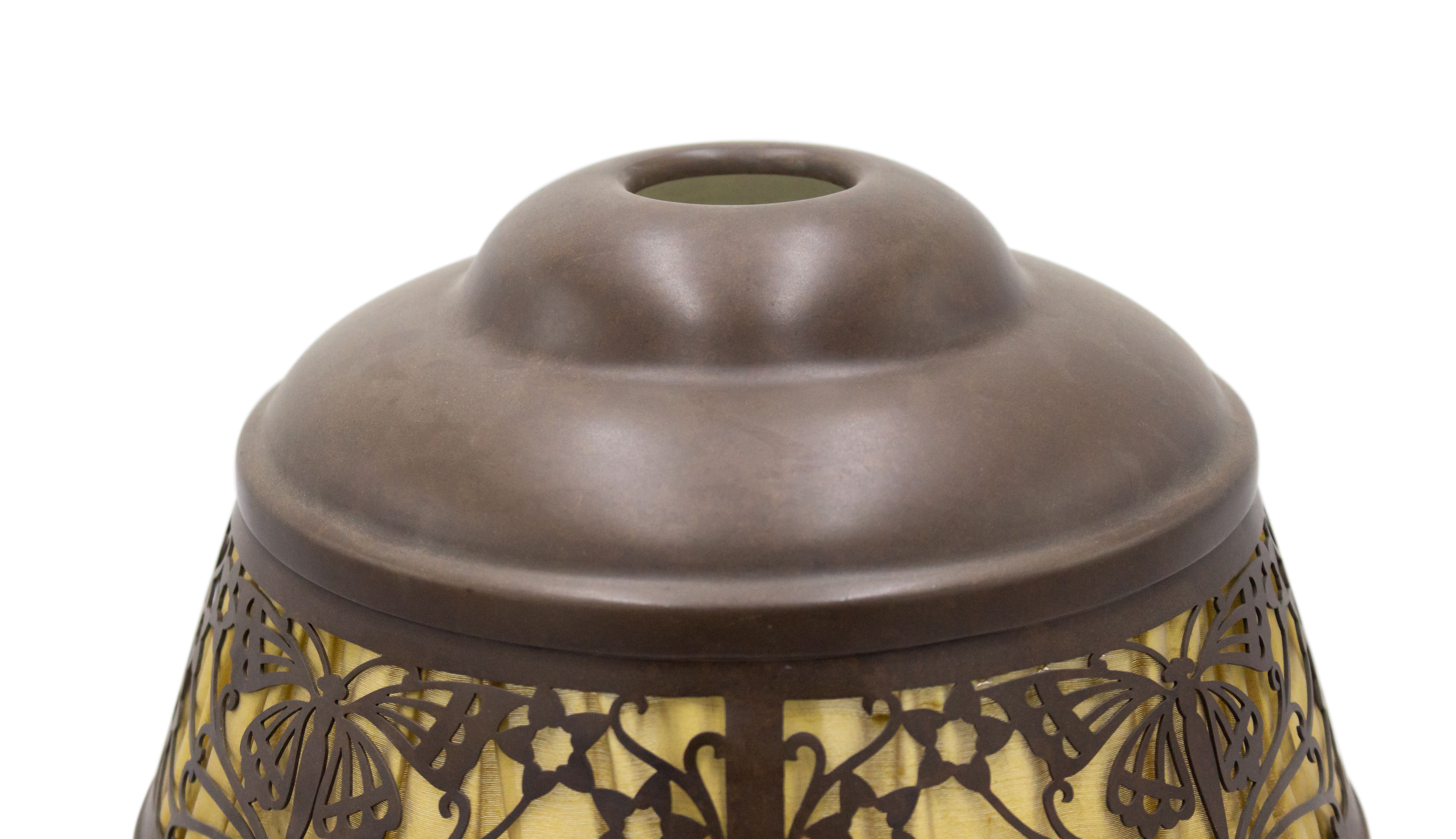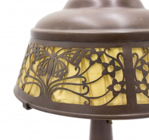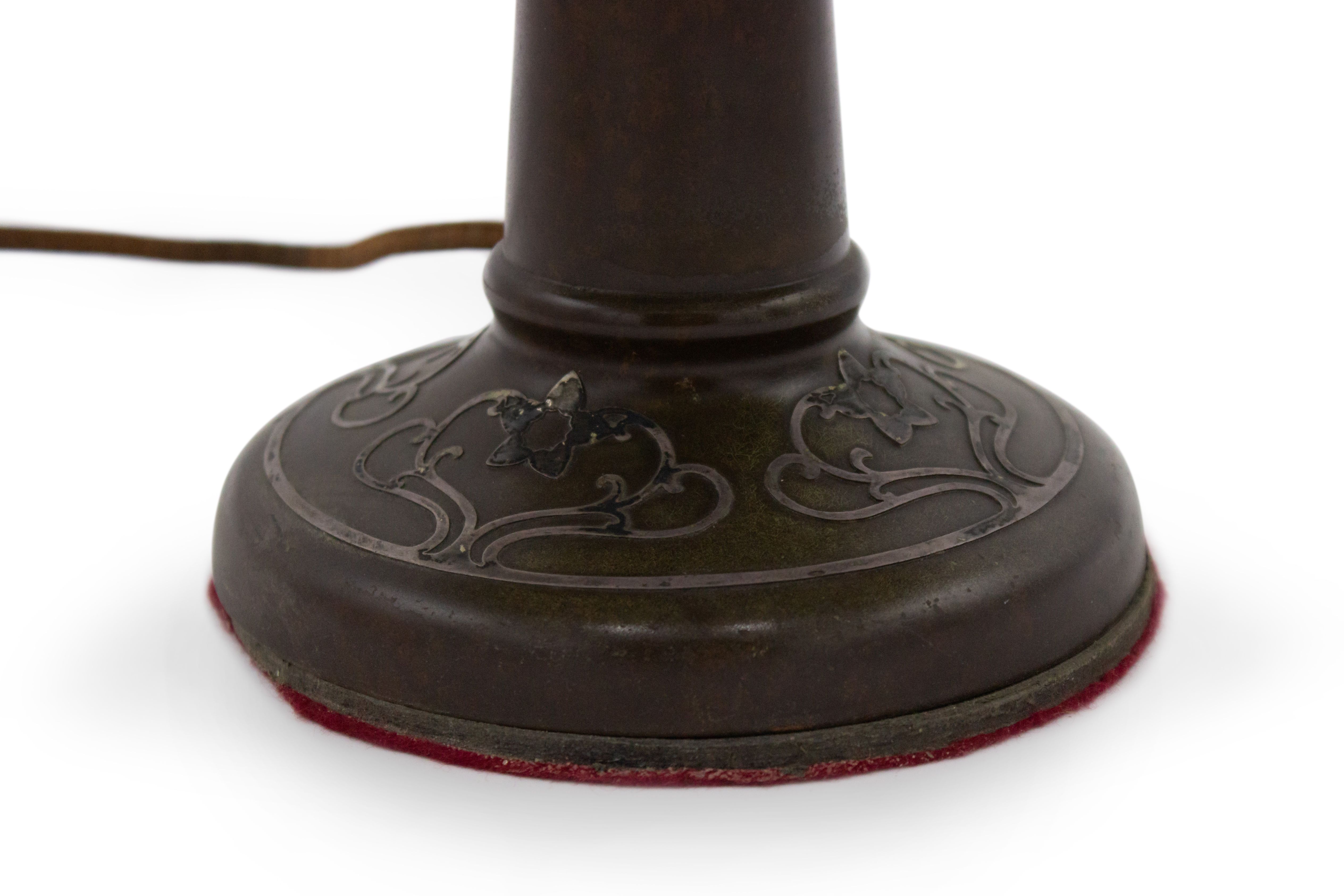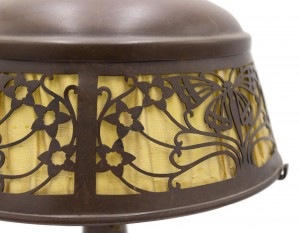 American Mission bronze patinated table lamp with silver deposit floral design base and filigree butterfly motif shade (HEINTZ ART METAL).
