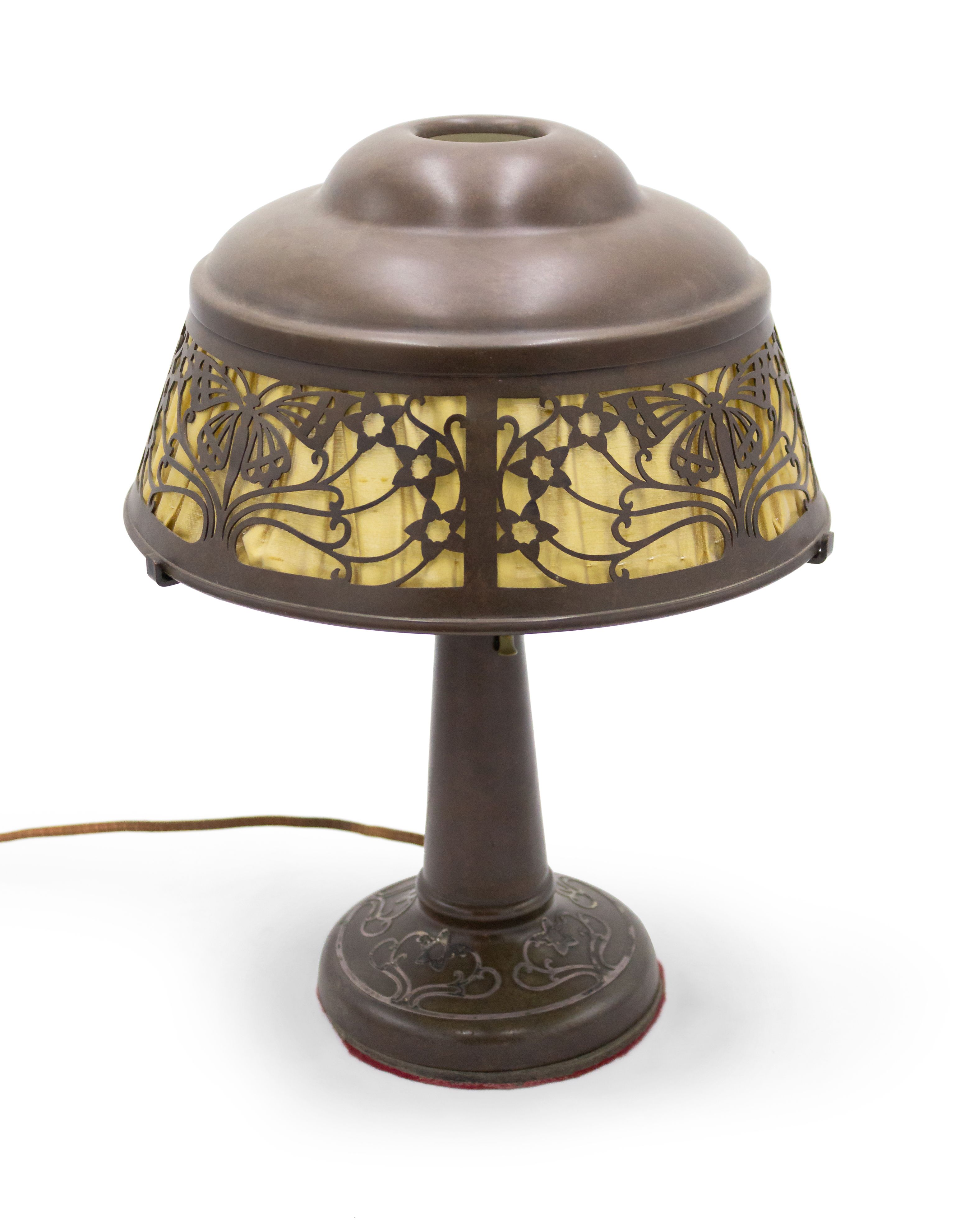 American Mission bronze patinated table lamp with silver deposit floral design base and filigree butterfly motif shade (HEINTZ ART METAL)..