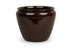 American Mission glazed brown porcelain jardiniere with hand painted monochromatic floral detail (WELLER POTTERY)