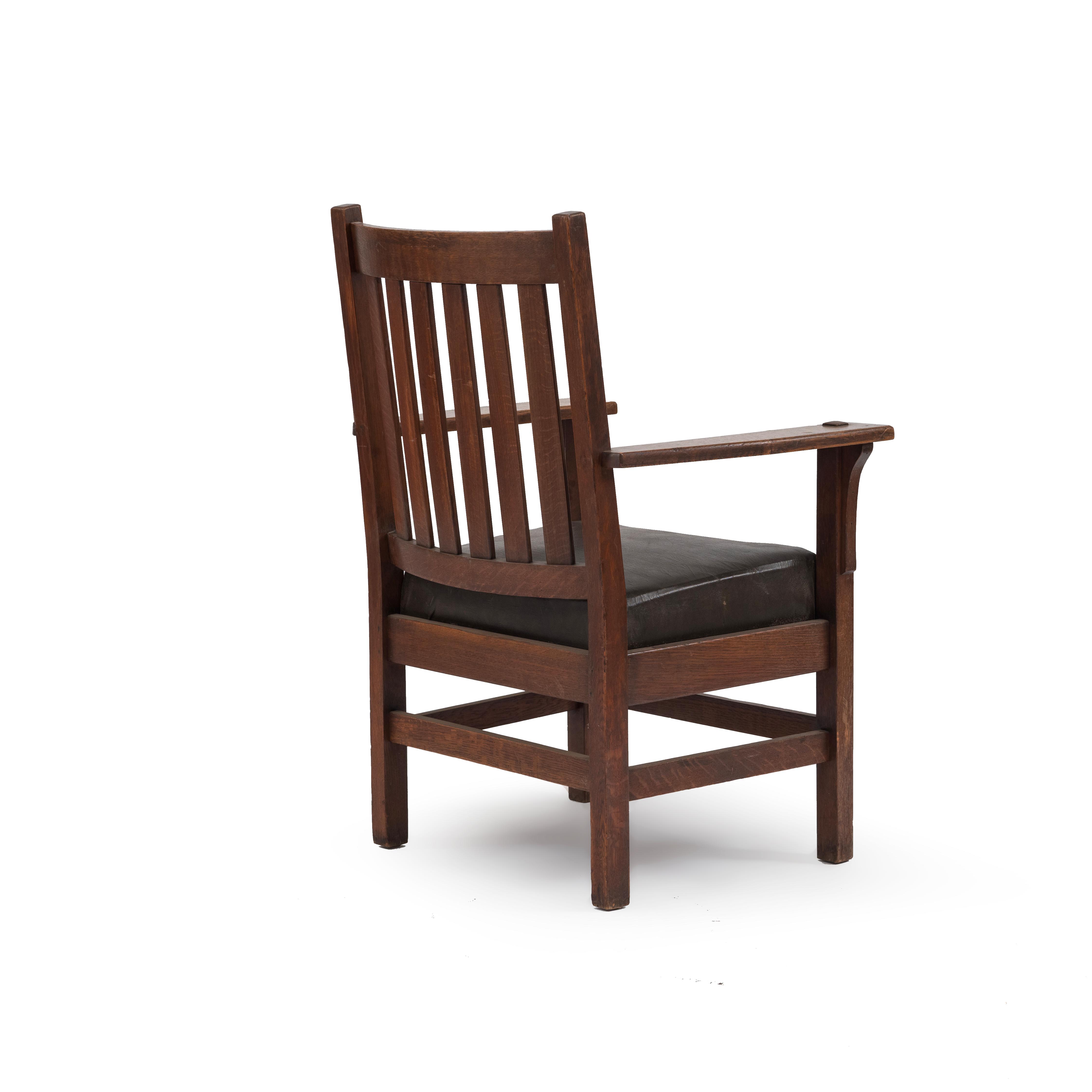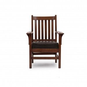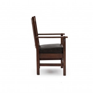 Style: American Materials & Techniques: Leather, oak, slat Category: Seating