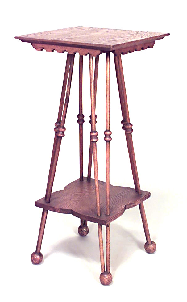 American Mission oak end table with square top and shelf and spool trimmed legs.