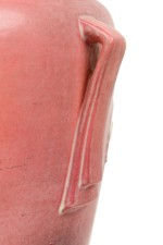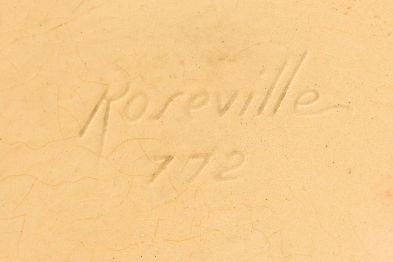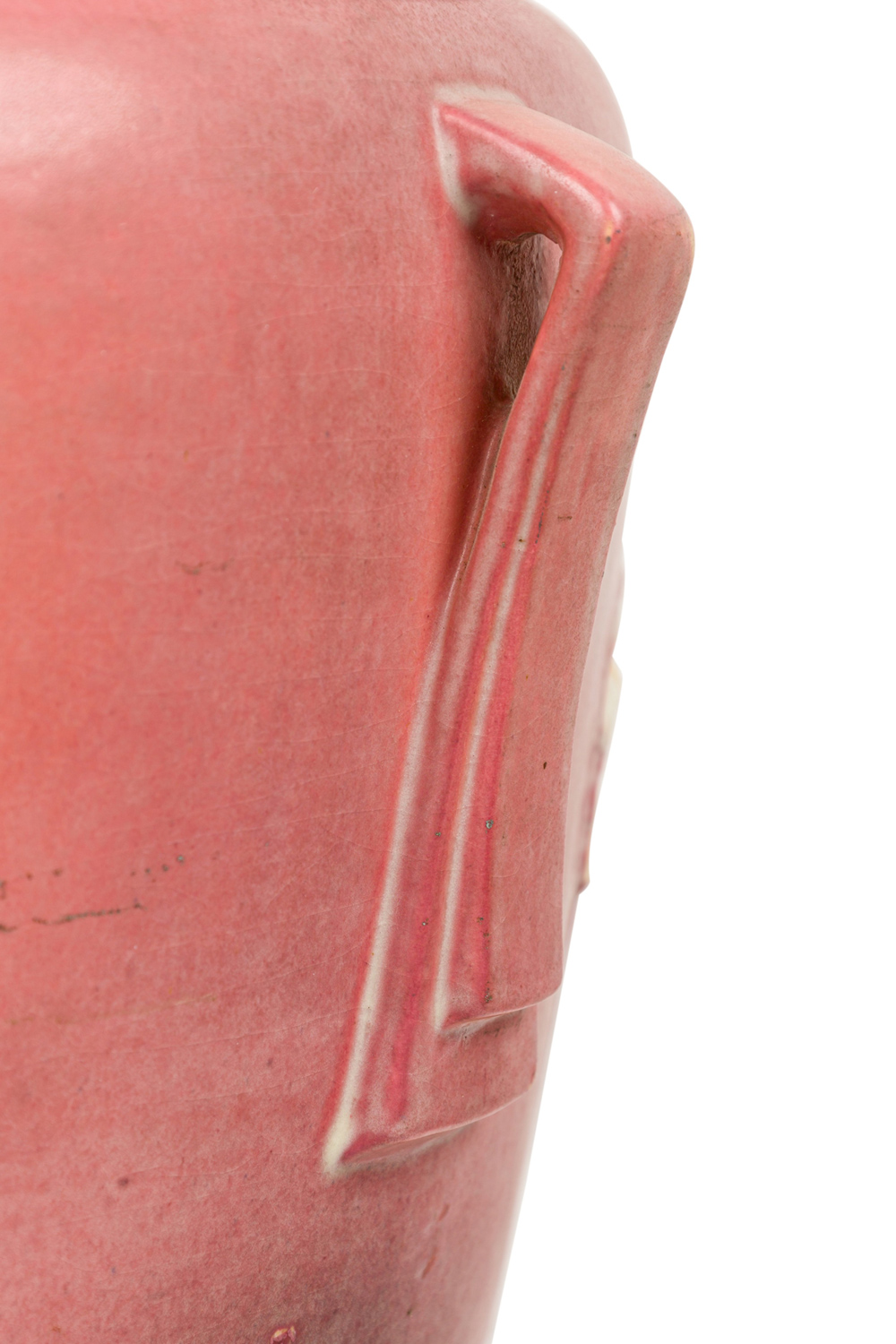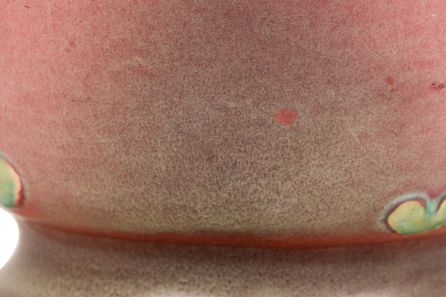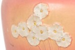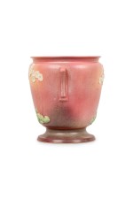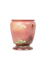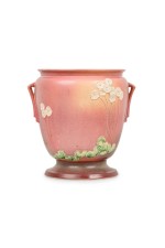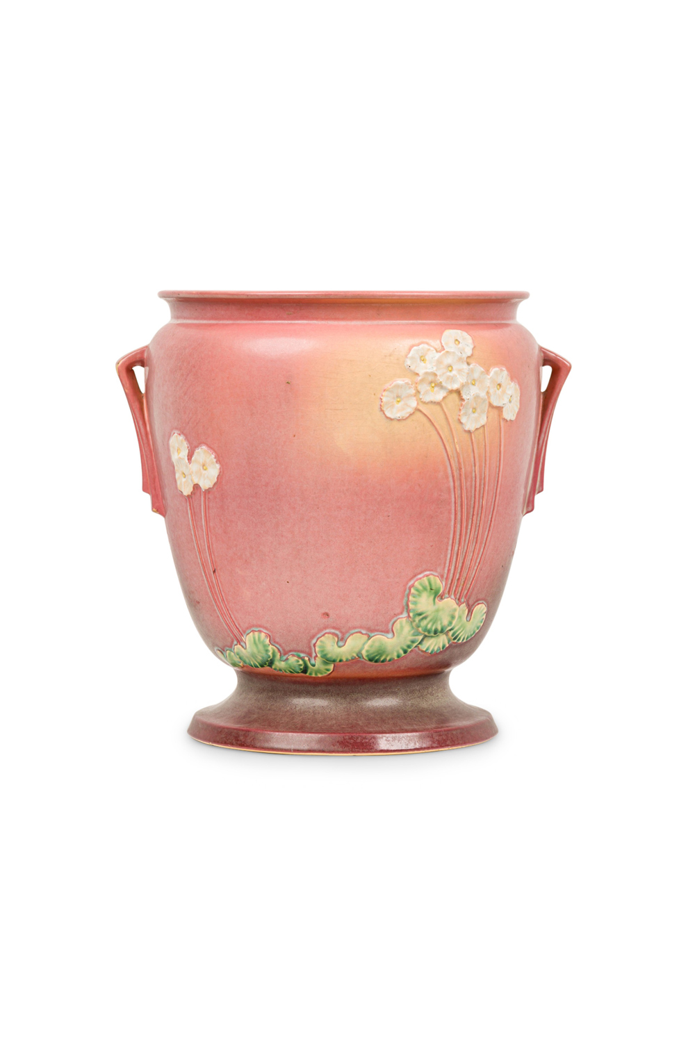 American Mission Roseville porcelain jardiniere with pink and white floral design.