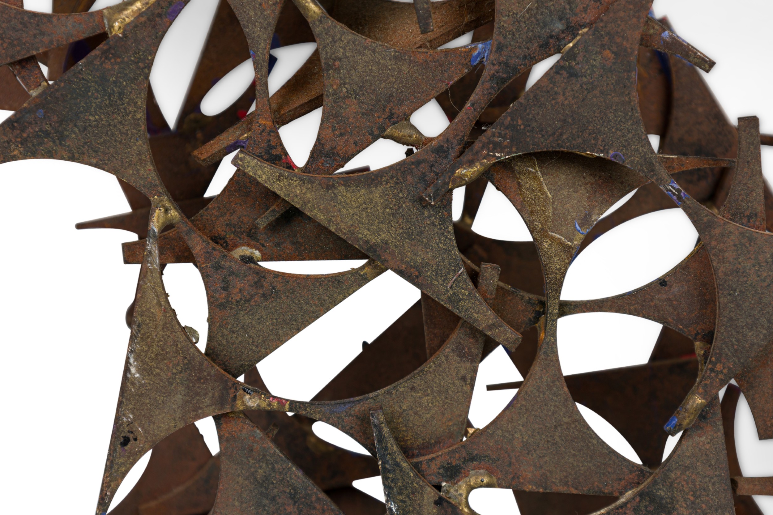 American Modern abstract sculptural wall art with splatter paint (CURTIS JERE, 1970).