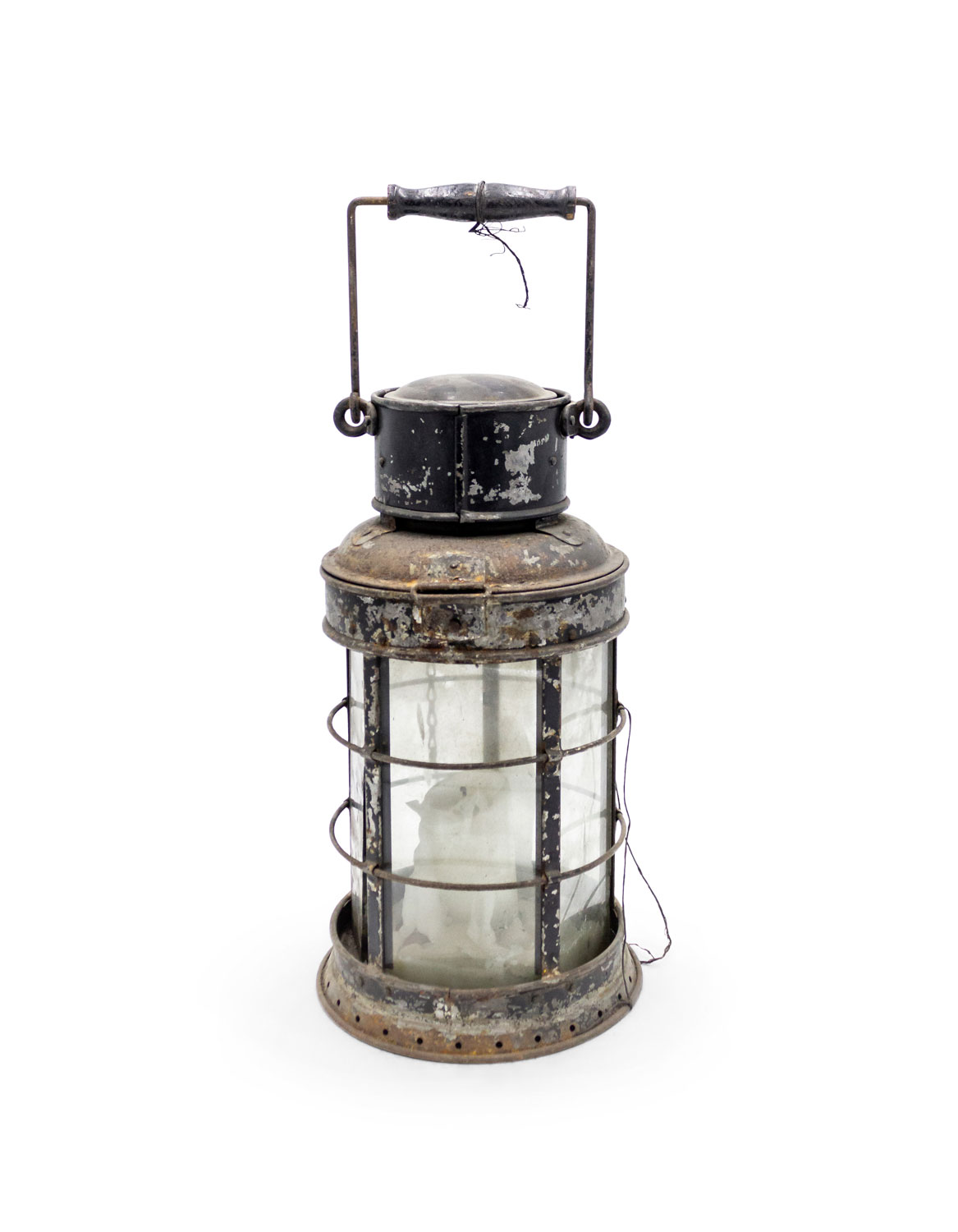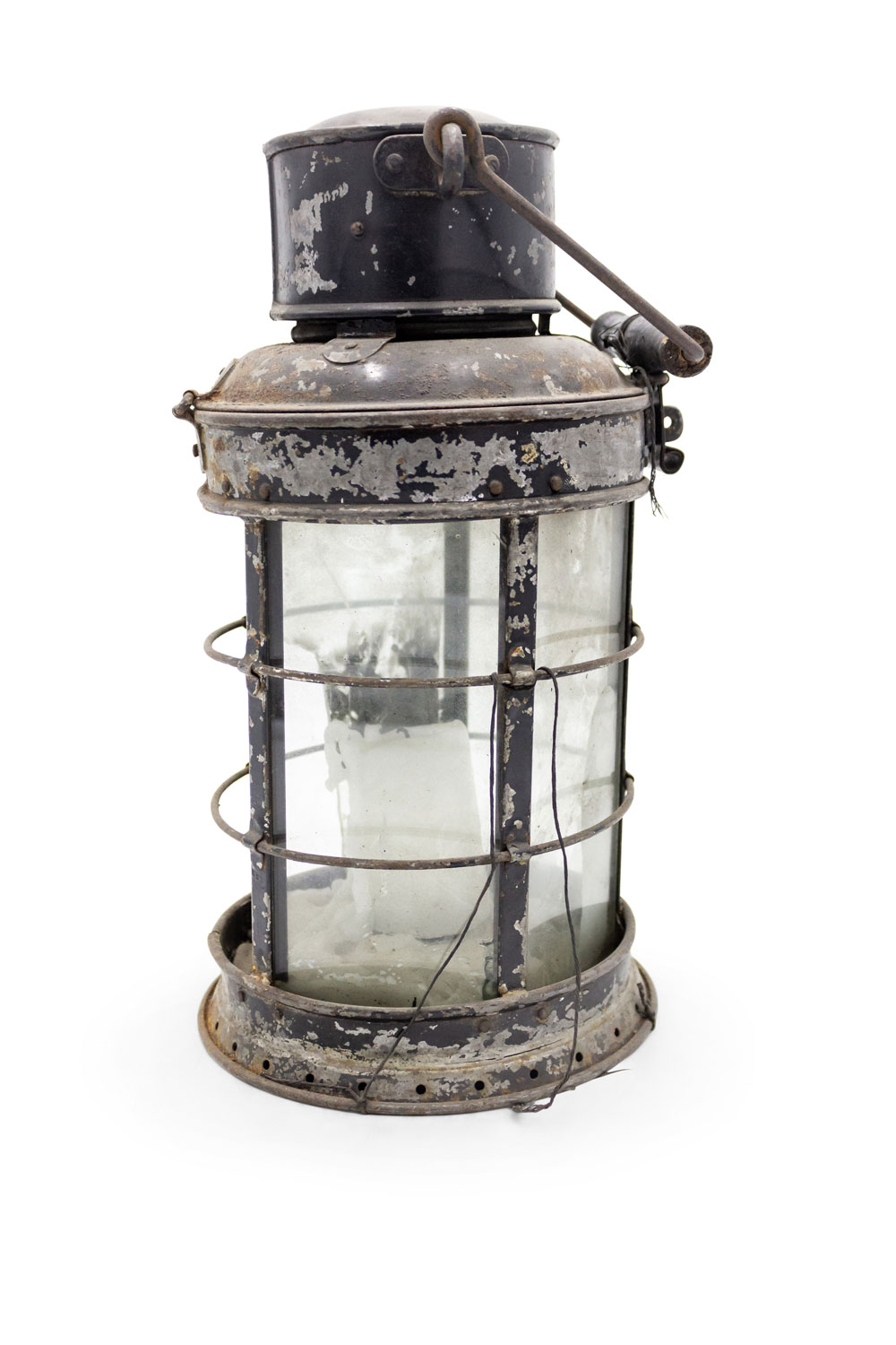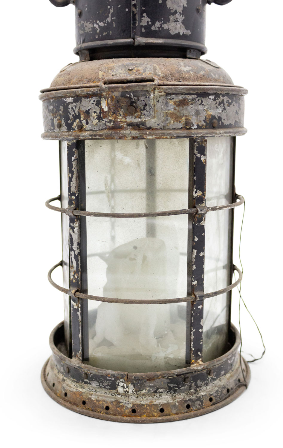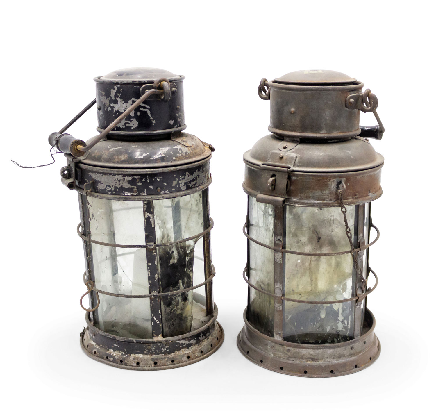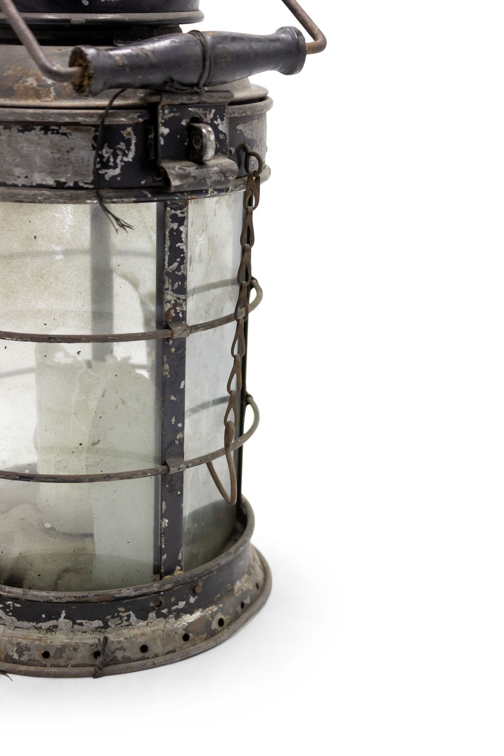 2 American (19th Century) painted metal round 6 glass panel embarkment lanterns with handle (PRICED EACH)