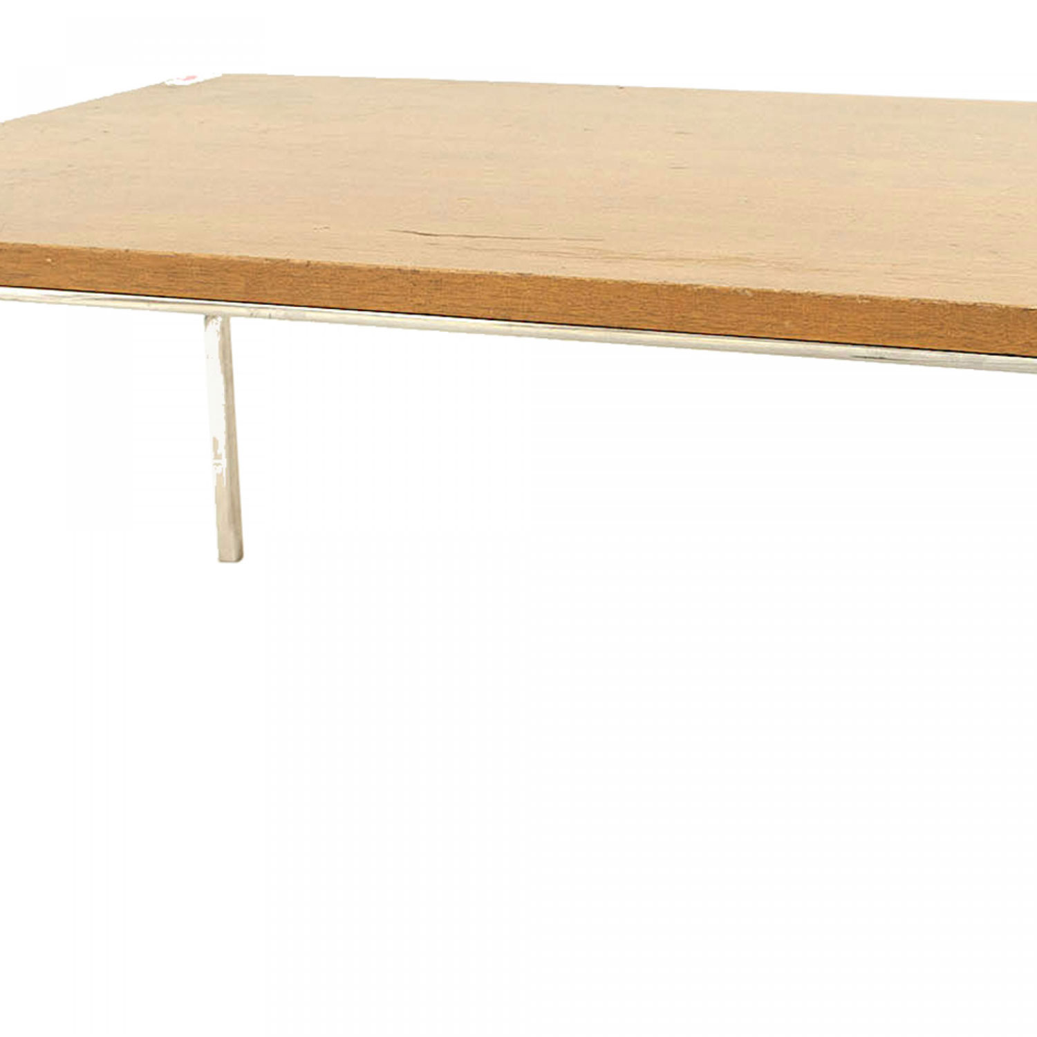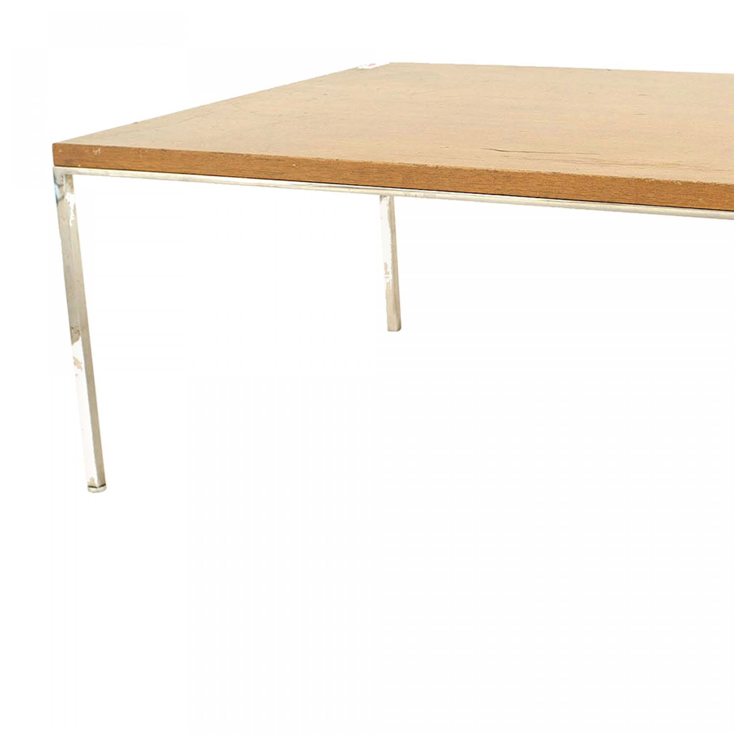 Scandinavian Modern rectangular coffee table with a teak veneer top and a chrome base and legs.