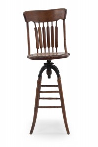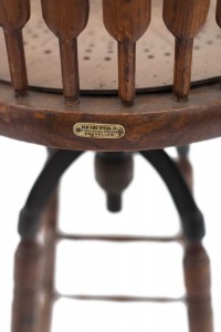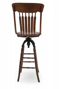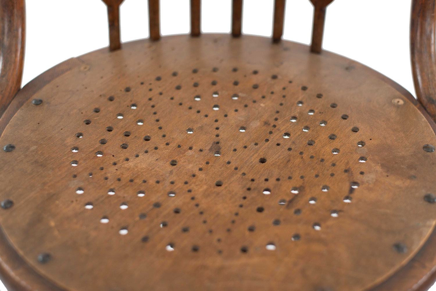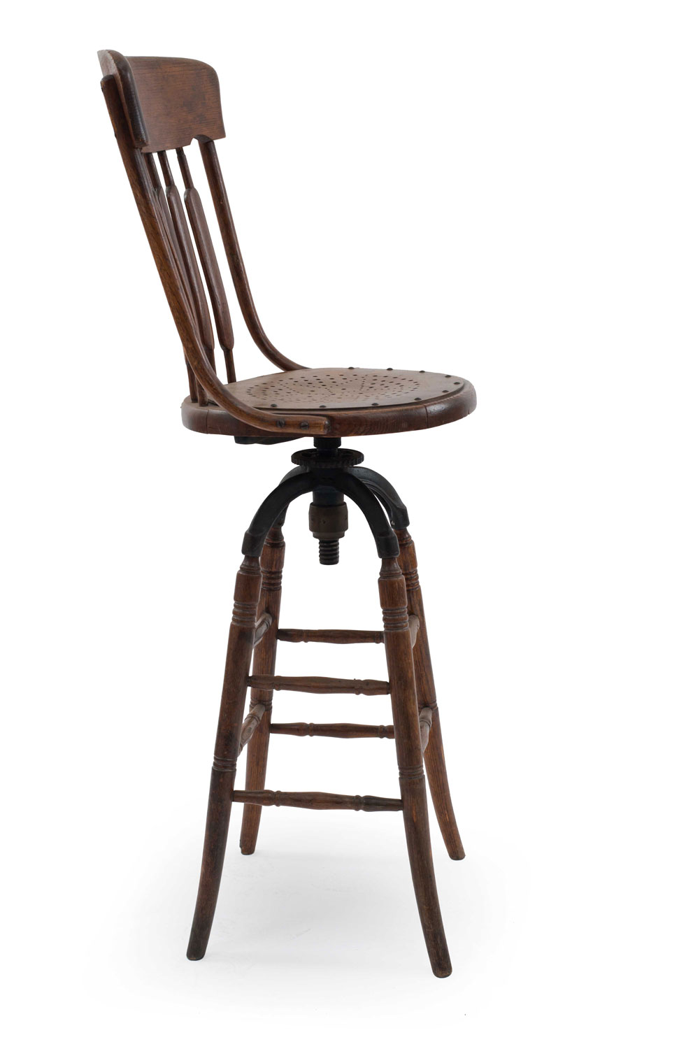 American Victorian oak bookkeepers chair with swivel and pierced seat and spindle back.