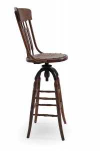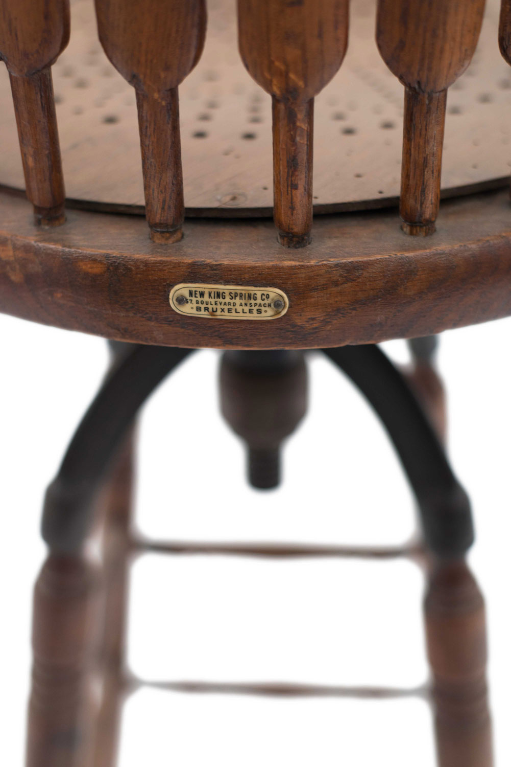 American Victorian oak bookkeepers chair with swivel and pierced seat and spindle back..