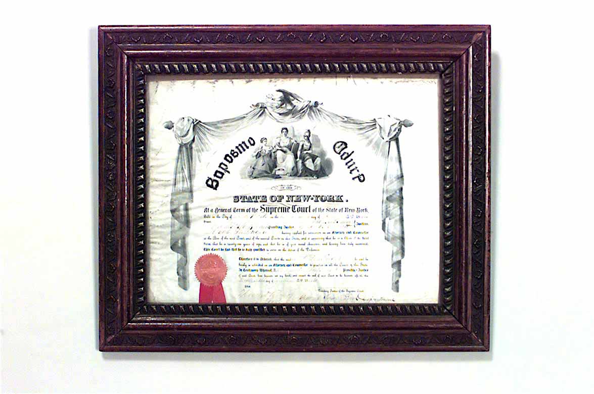 American Victorian oak framed wall plaque of a diploma..