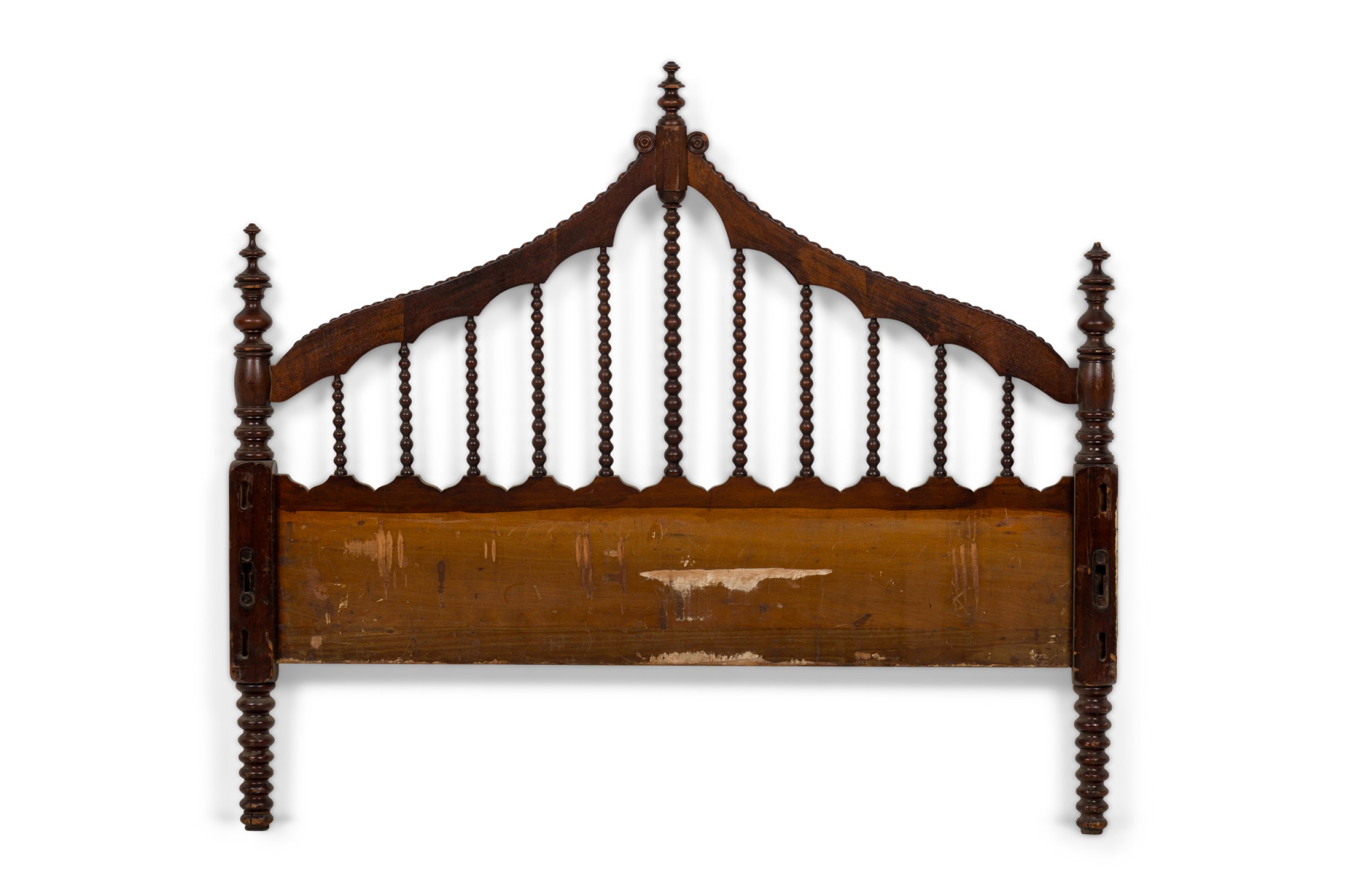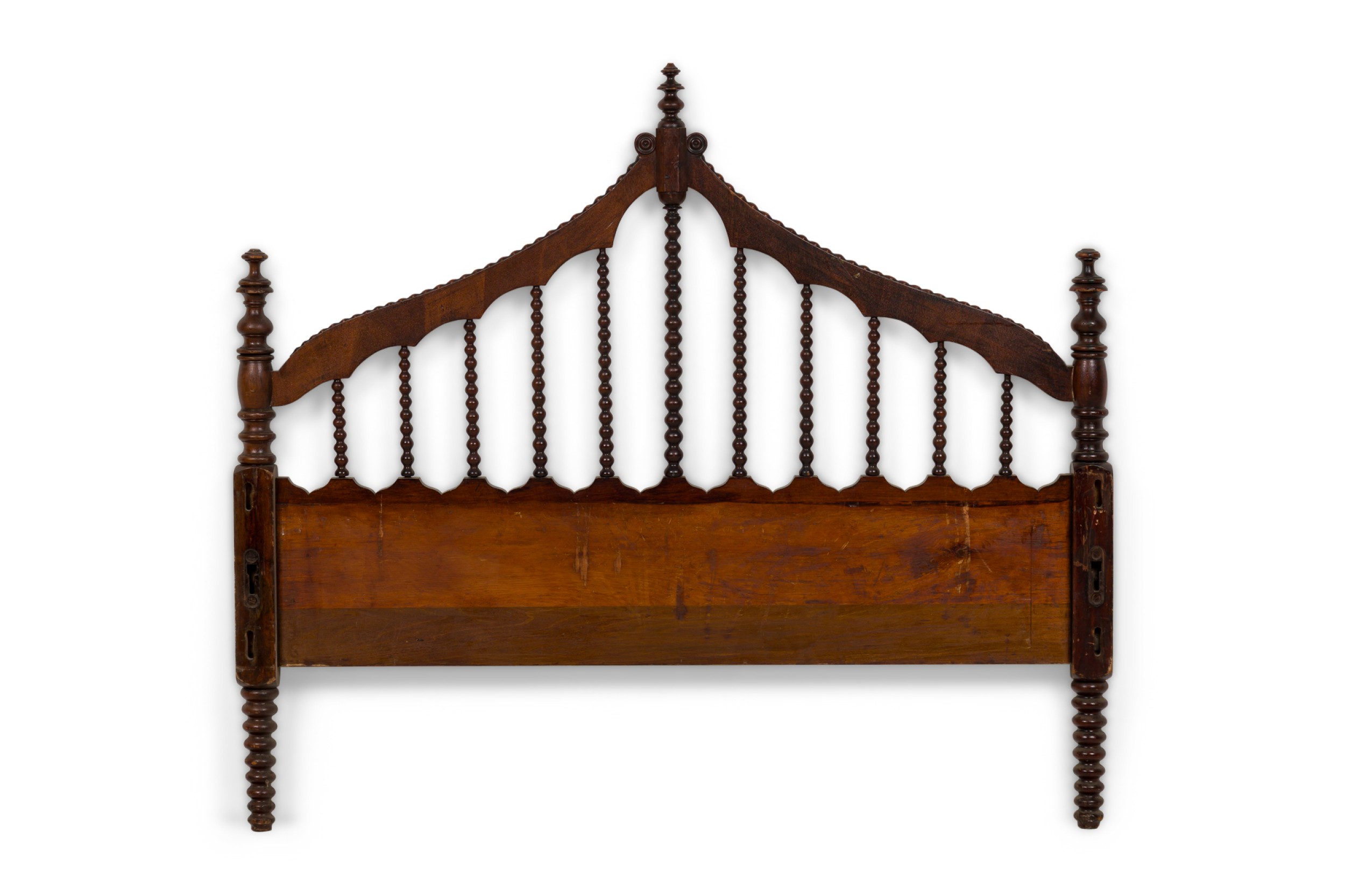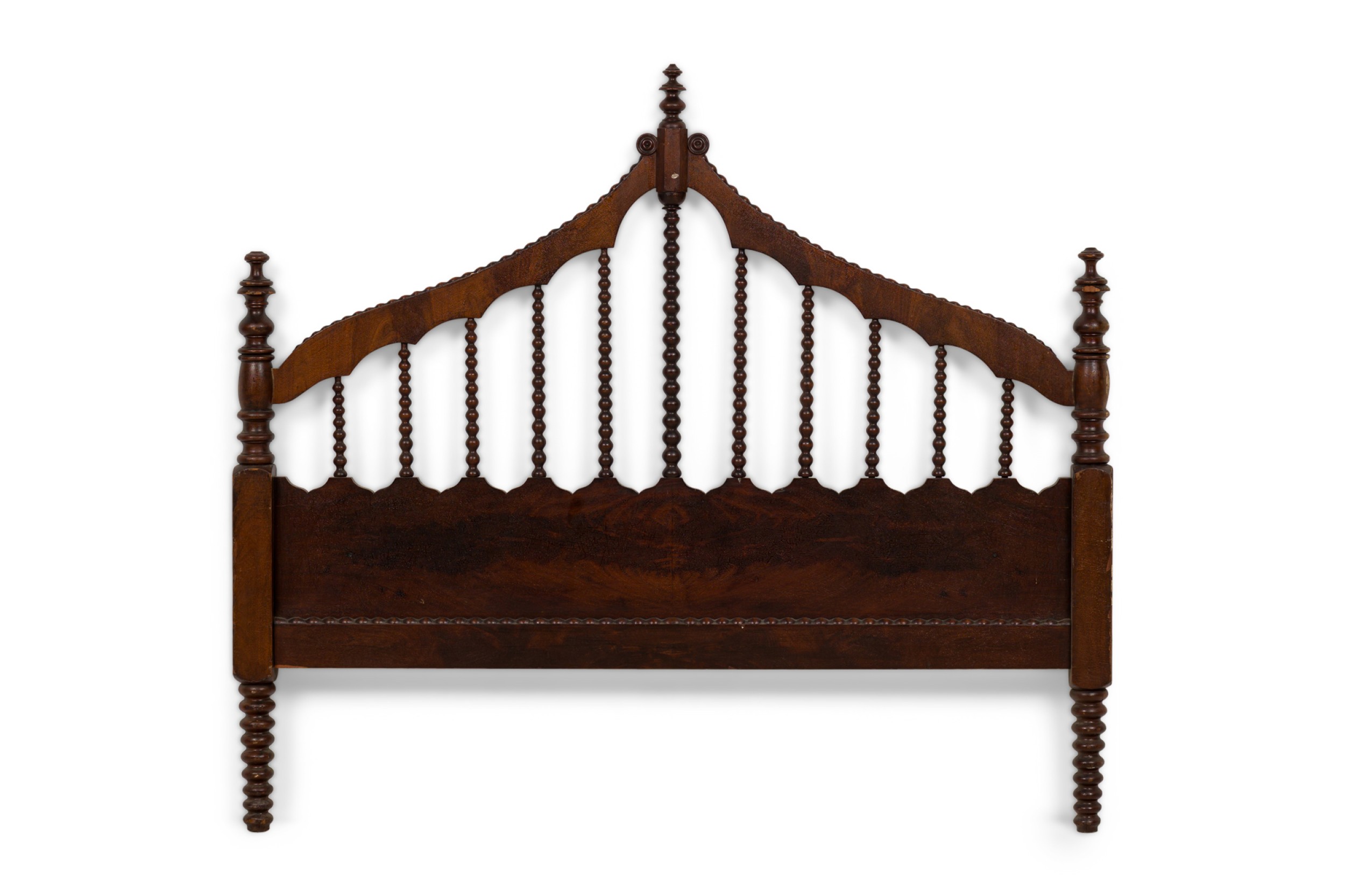 American Gothic Victorian full size spool bed headboard and footboard with beaded railings ending on baluster legs with finials. (No Side Rails).