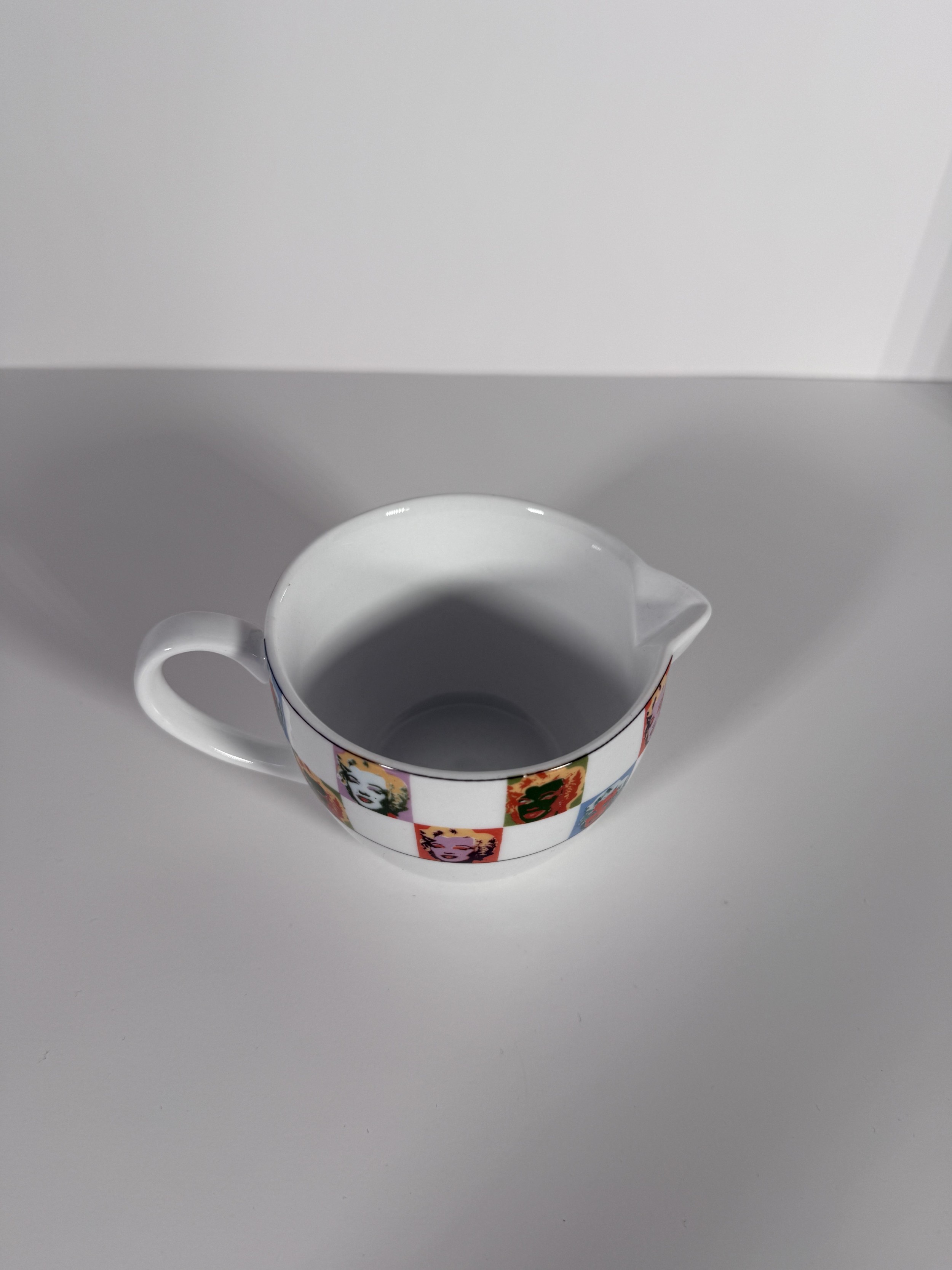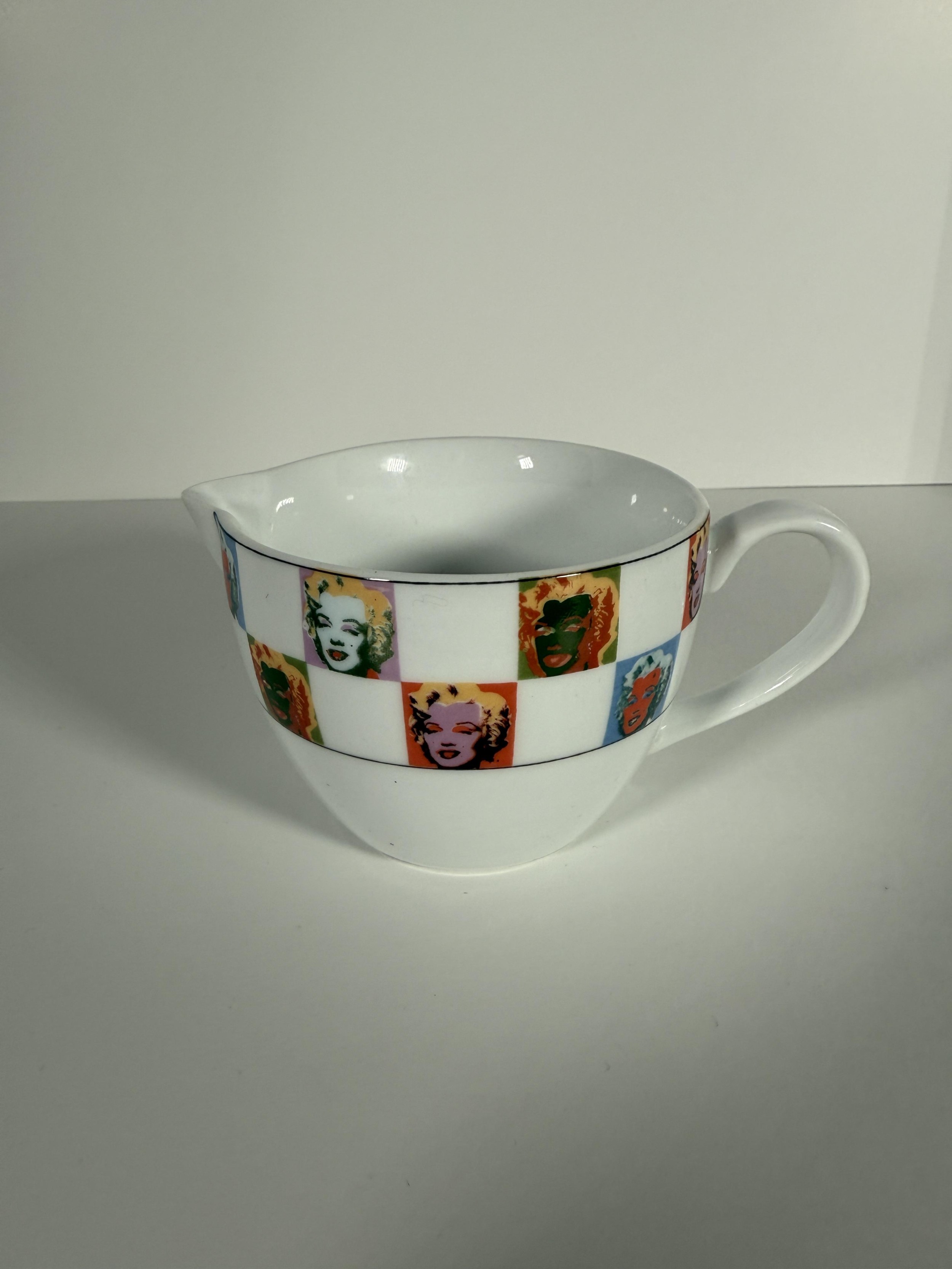 SET OF 3 Andy Warhol American Modern cream pitchers featuring a "Some Like it Hot" Marilyn Monroe pop art checkerboard pattern. (PRICED AS SET) AVAILABLE INDIVIDUALLY. (See other dishes in this pattern: (See other dishes in this pattern: REG4176- REG4186).