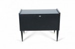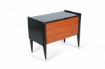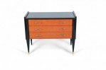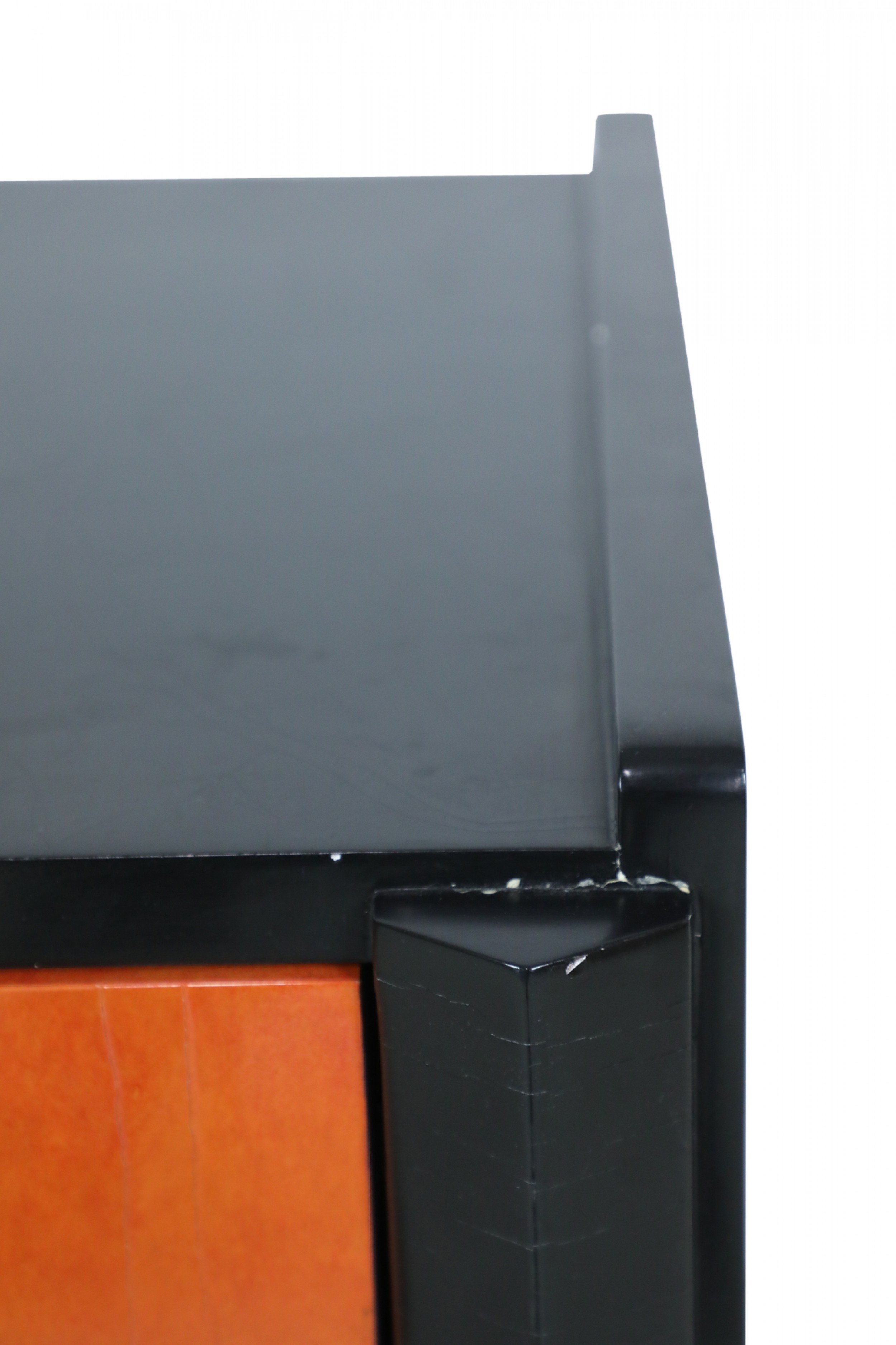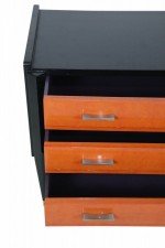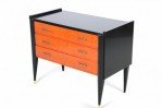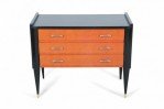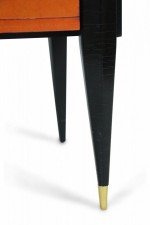 Art Deco Black and Orange Painted 3-Drawer Chest with Beveled Front Legs and Bronze Sabots
