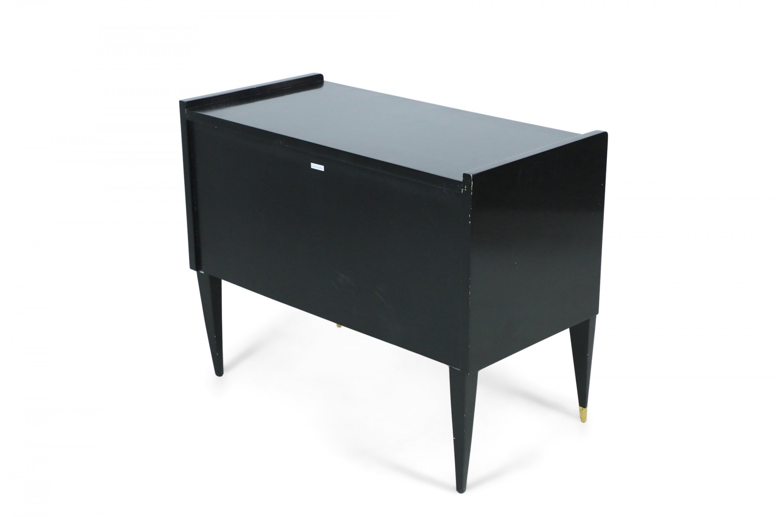 Art Deco style black and orange lacquered 3-drawer chest with beveled front legs and bronze sabots with nickel drawer pulls.