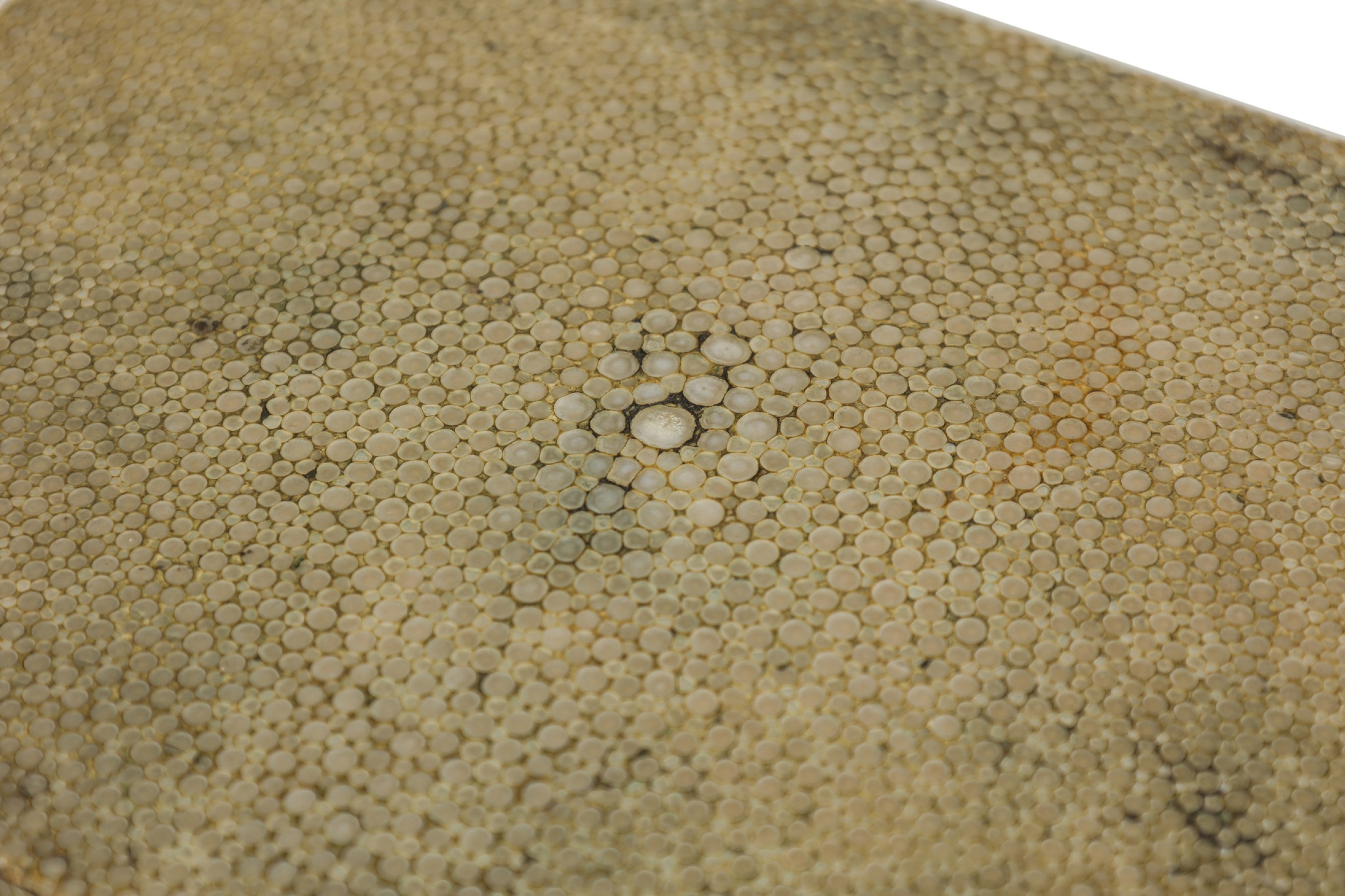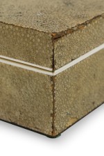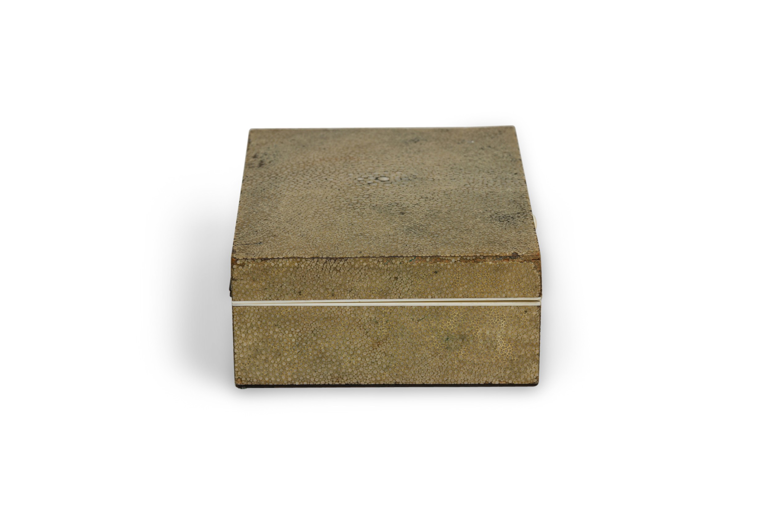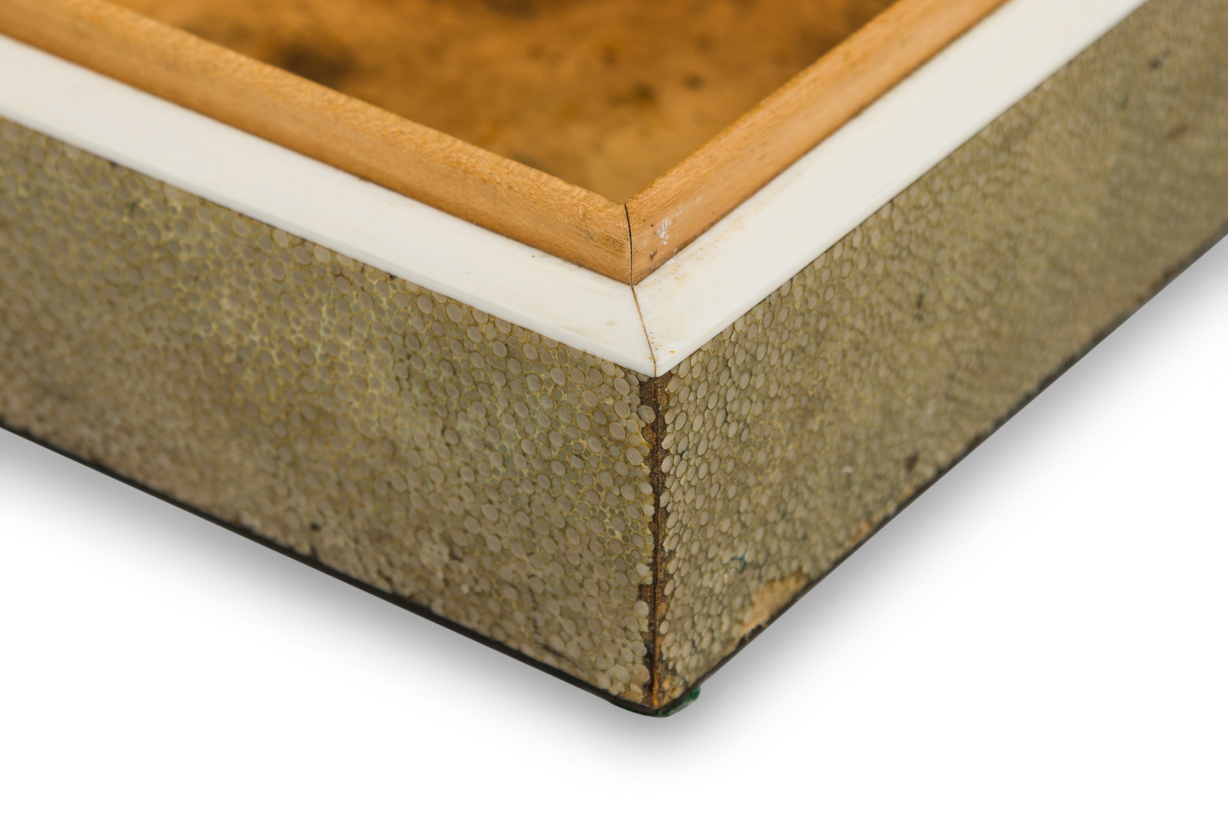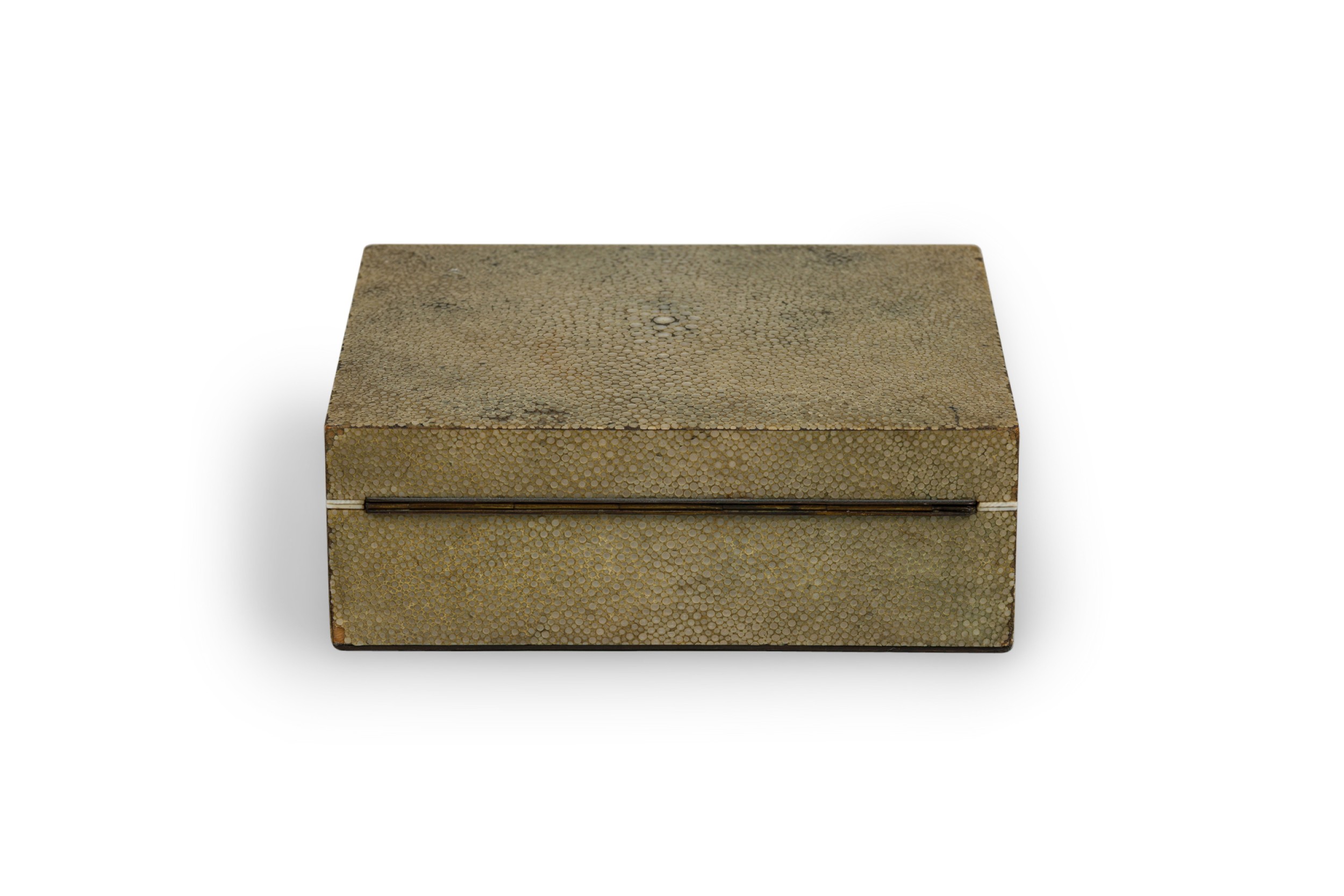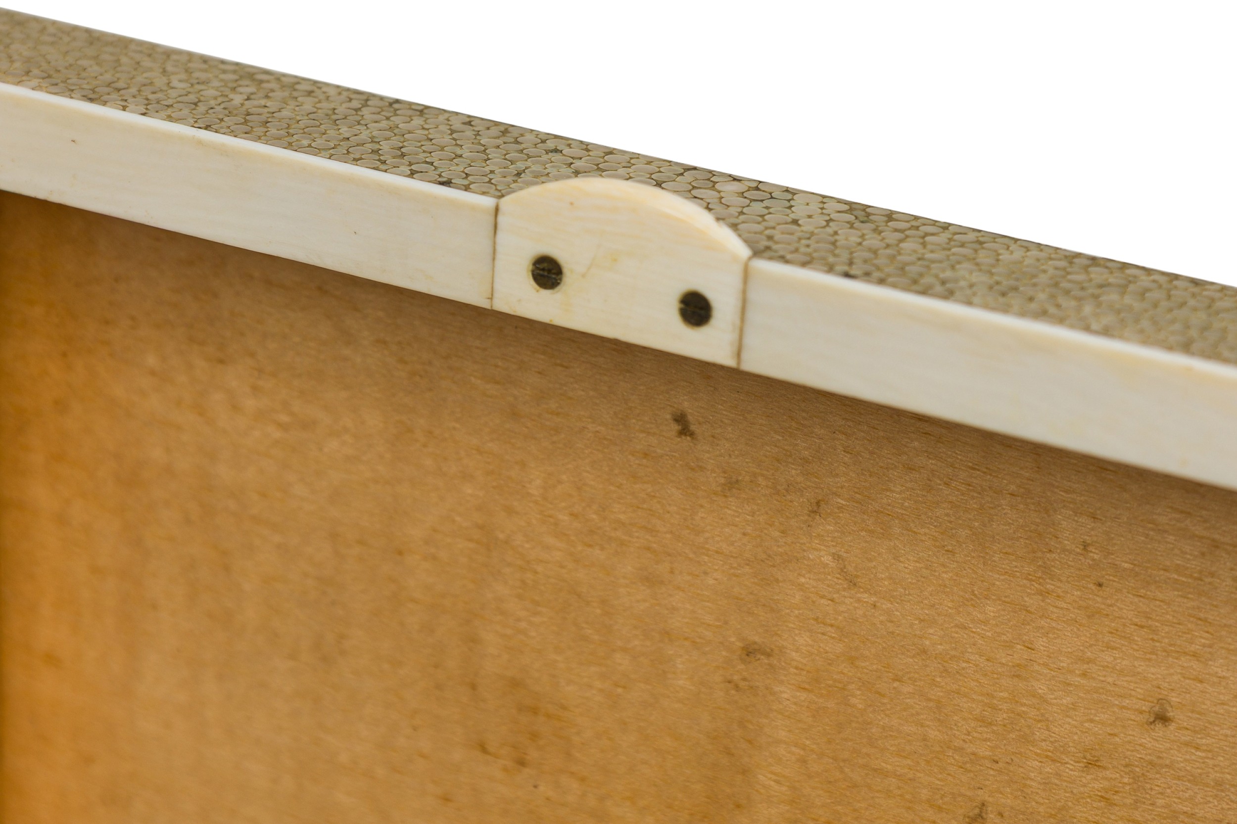 English Art Deco green shagreen and bone trimmed box with a wood lining in the interior
