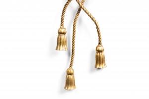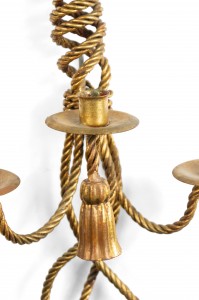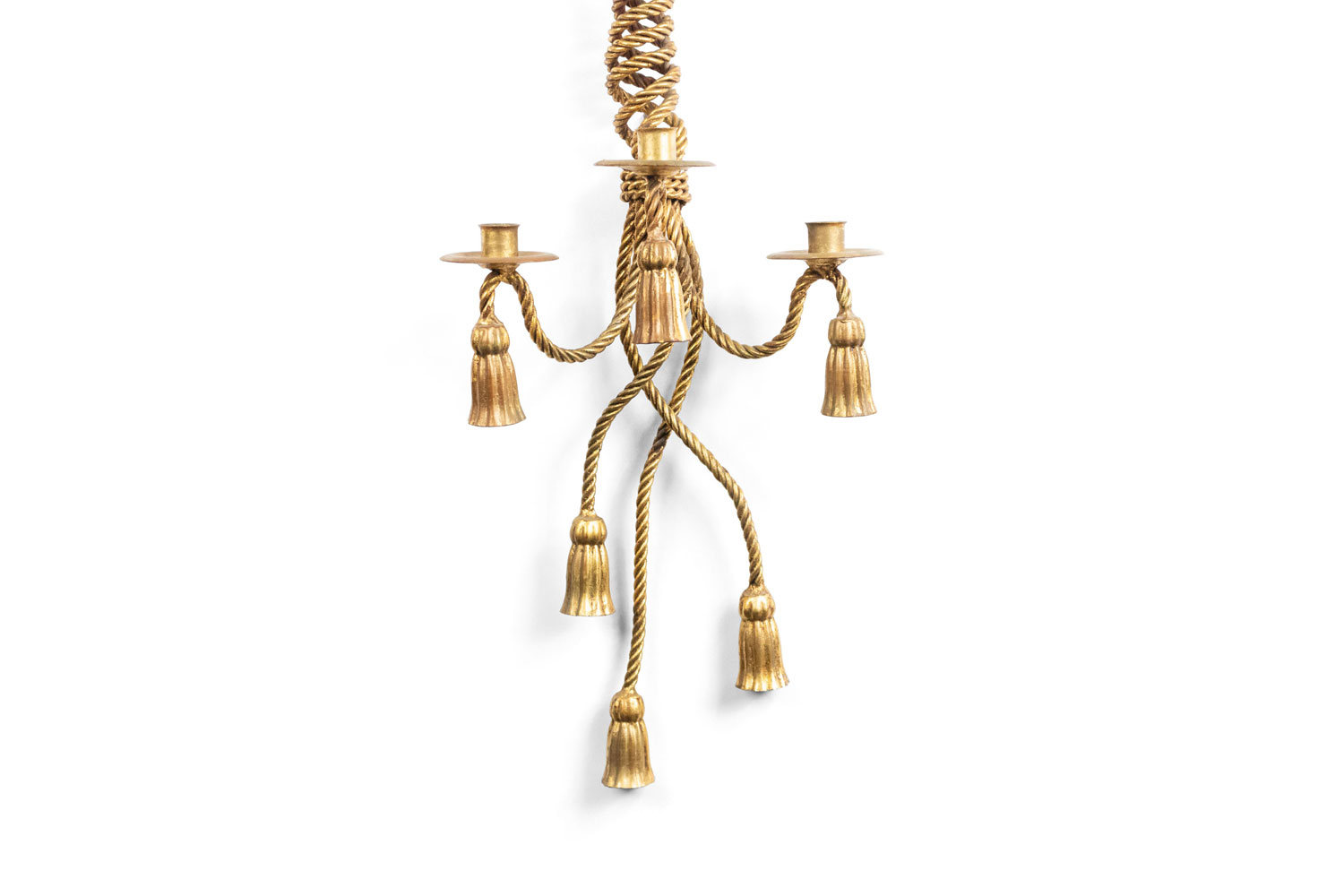 Style: Mid-Century Materials & Techniques: Gilt / giltwood, metal, rope, tassel Category: Lighting