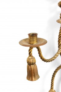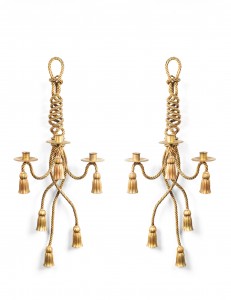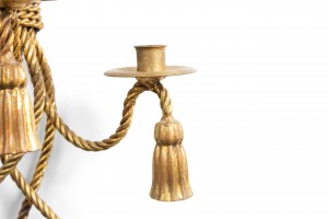 Pair of Art Moderne Rope and Tassel Gilt Wall Sconces