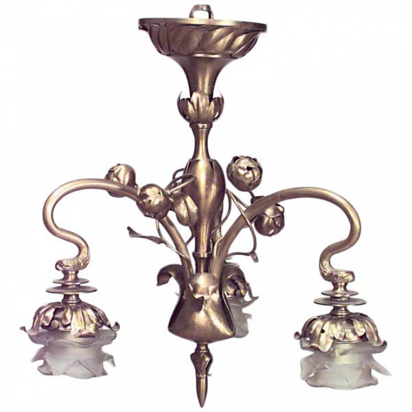 Art Nouveau Style Gilt Metal Rustic Foliate Chandelier