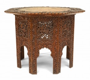 Style: Asian Materials & Techniques: Copper, walnut, carved, scalloped Category: Tables