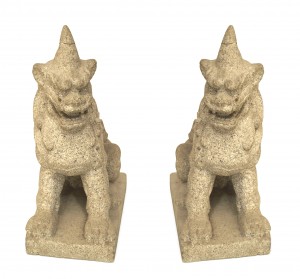 Pair of Asian Granite Foo Dog Figures