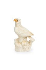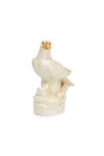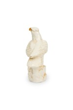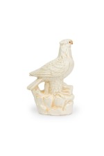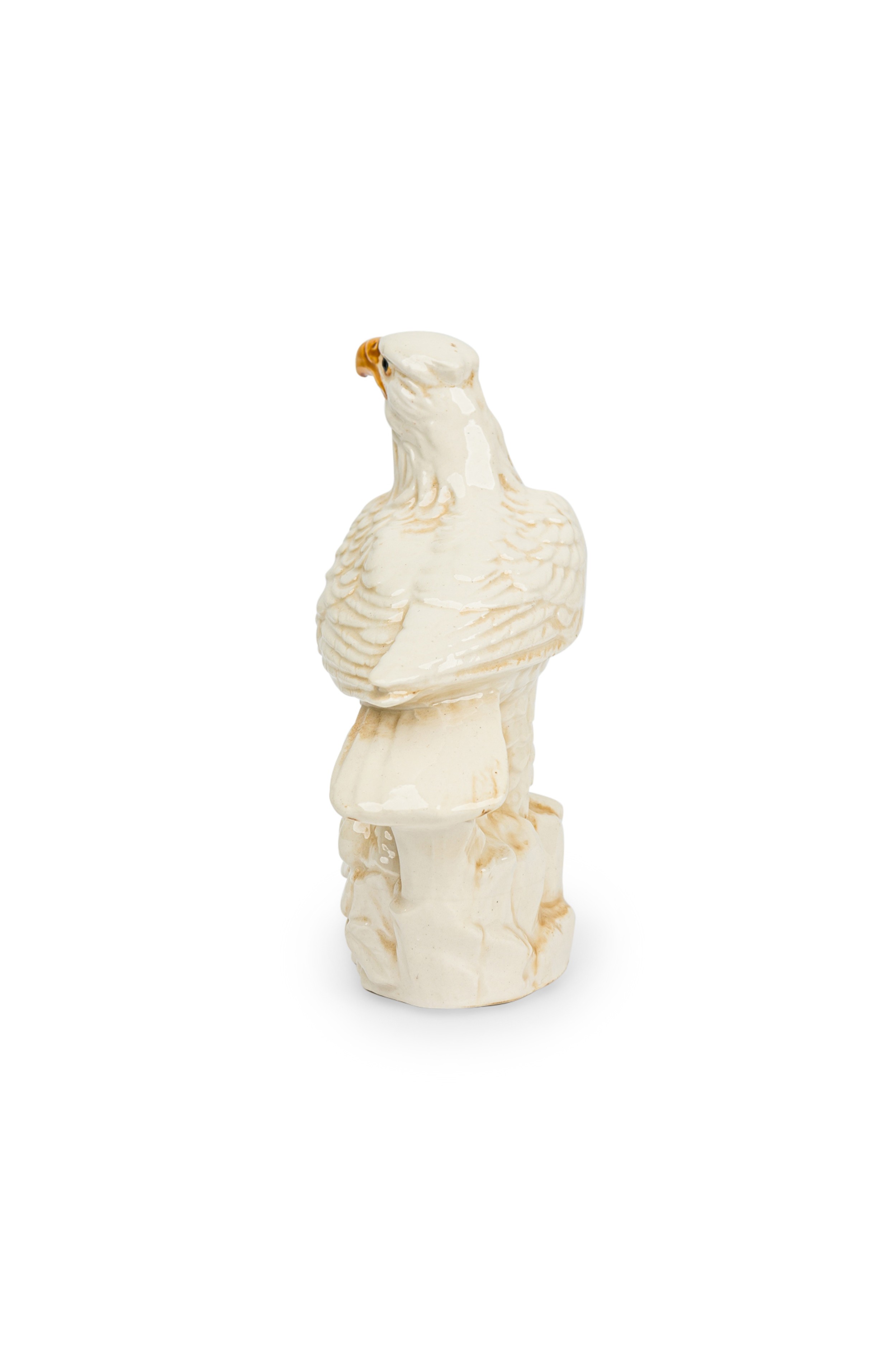 Vintage Asian Japanese style white porcelain hawk with yellow painted beak standing on base