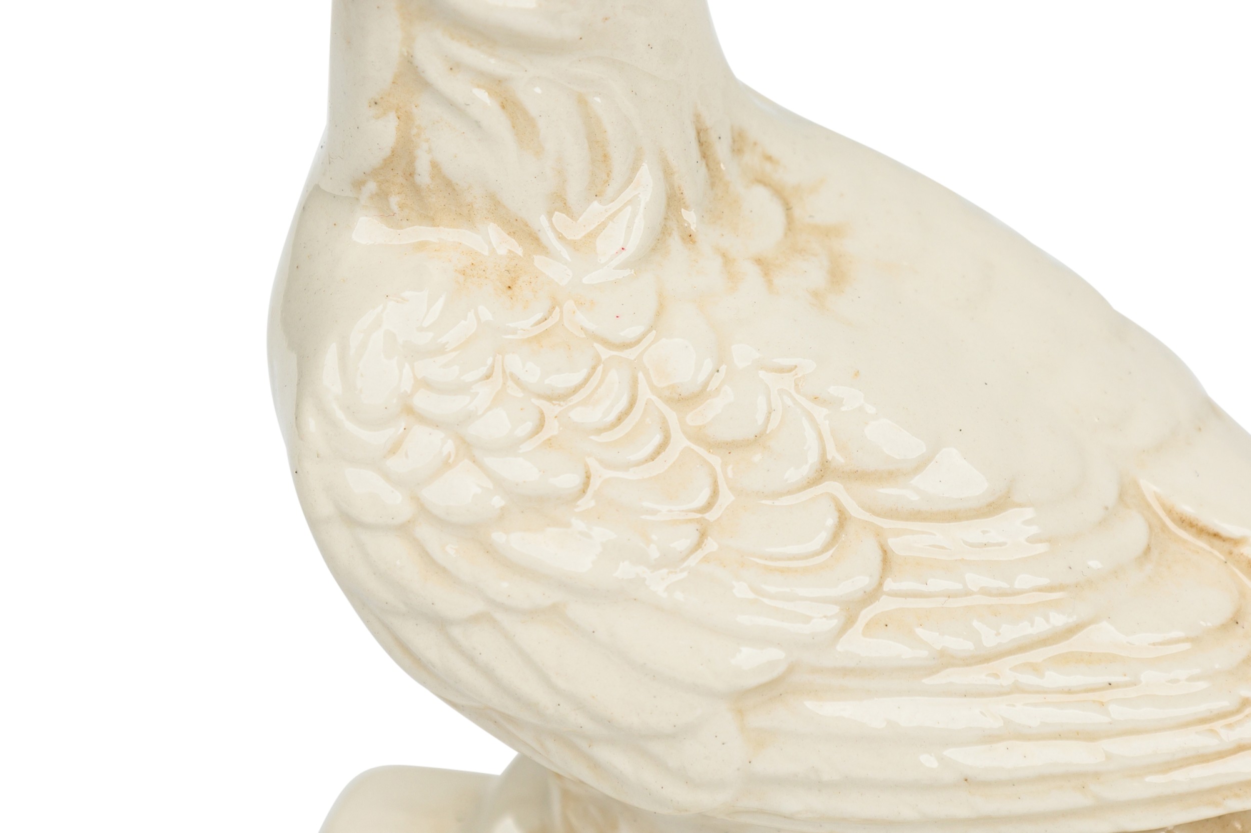 Vintage Asian Japanese style white porcelain hawk with yellow painted beak standing on base.