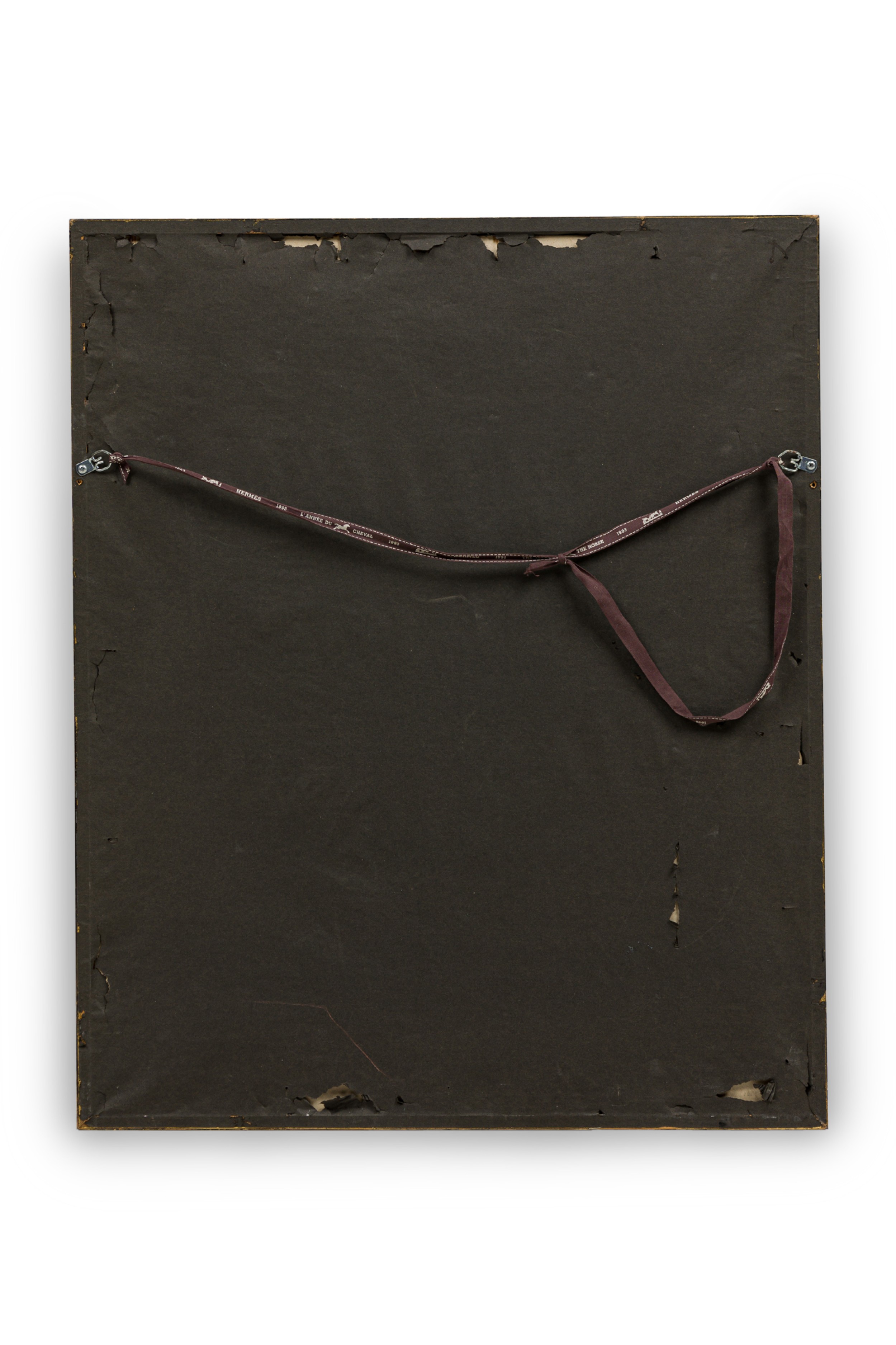 Thai Mythological painting depicting a noble woman in her retreat making an offering in a gold and black frame