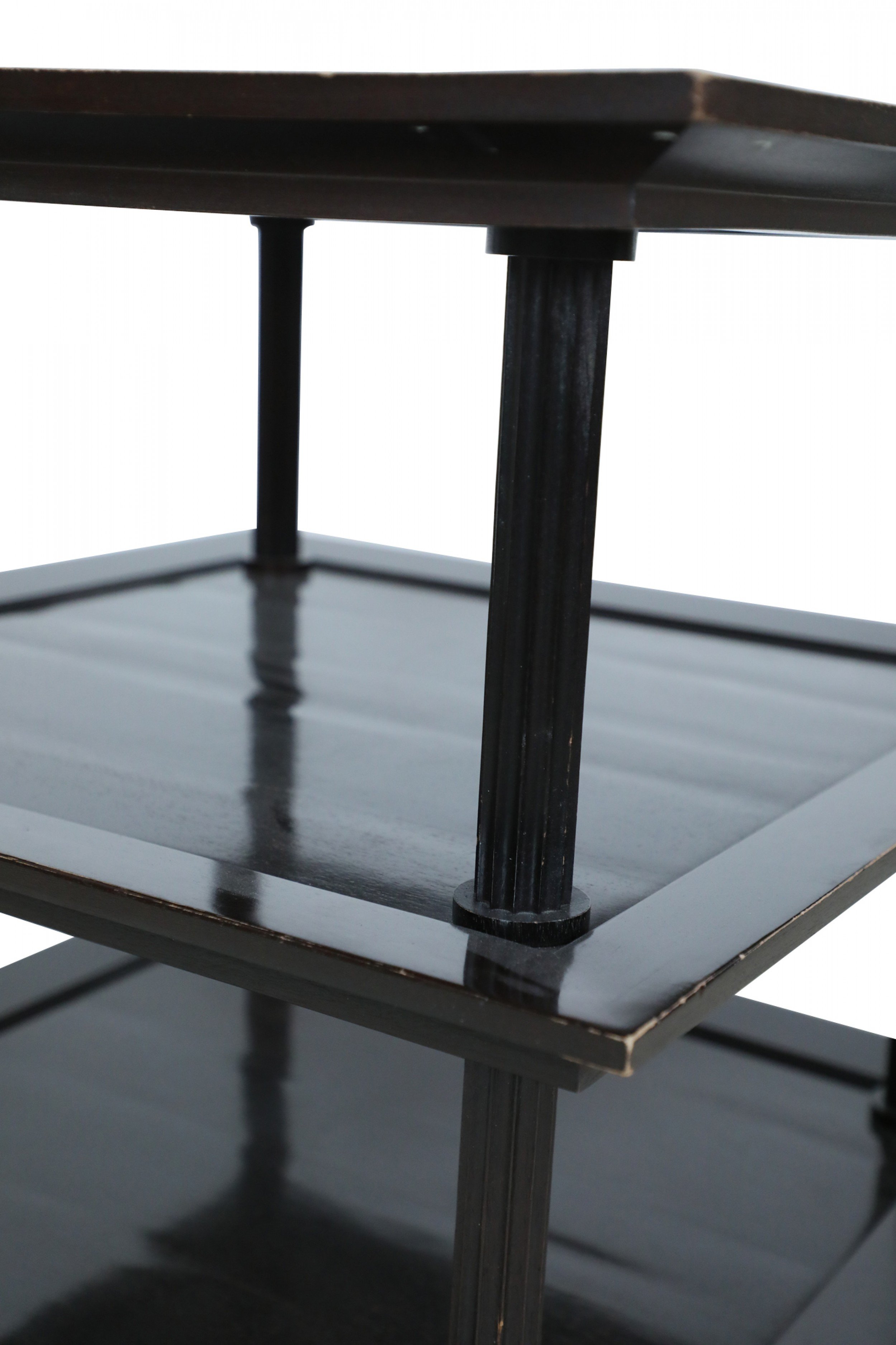 Contemporary American three tiered square mahogany accent /end table produced by Baker Furniture. (BARBARA BARRY)
