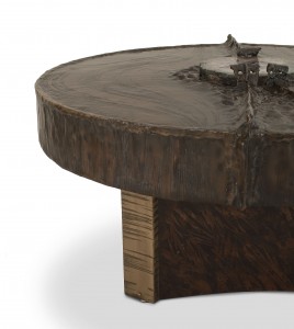 Belgian Modern design round sculptural cast copper coffee table with inset quartz stone on a copper and brass base (by MARC D'HAENS)
