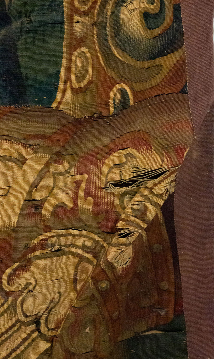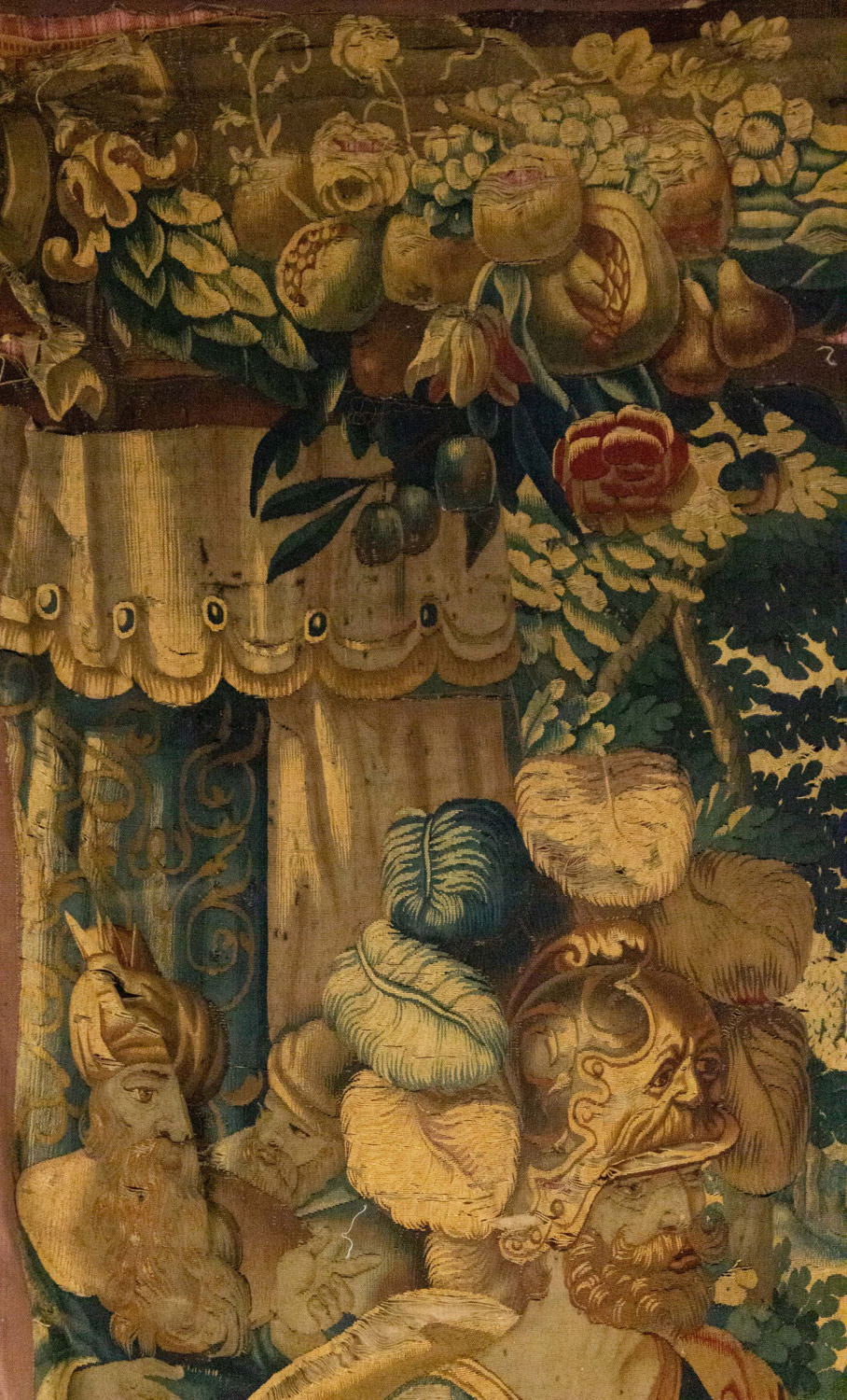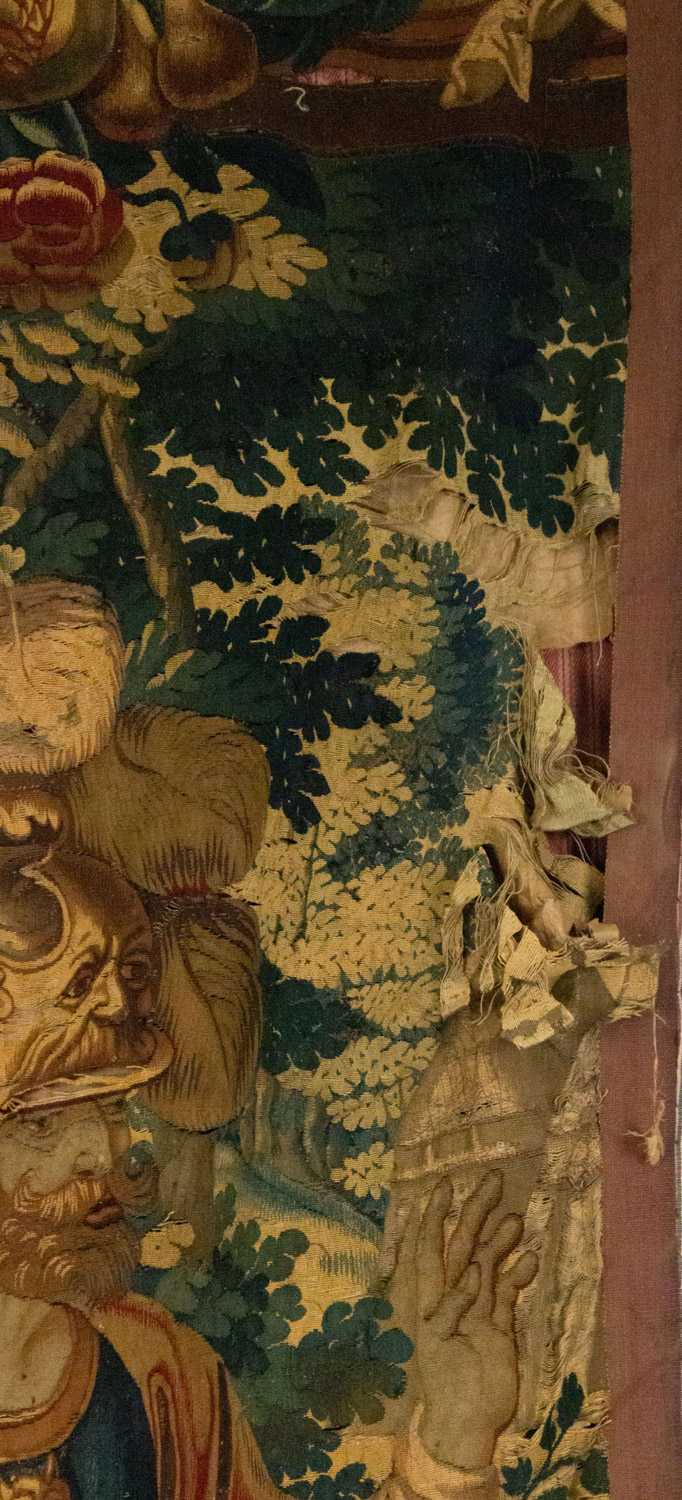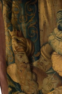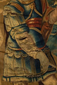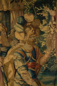 Belgian (17/18th Century) vertical woven tapestry of general wearing helmet with plumes..