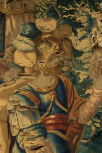 Belgian (17/18th Century) vertical woven tapestry of general wearing helmet with plumes.
